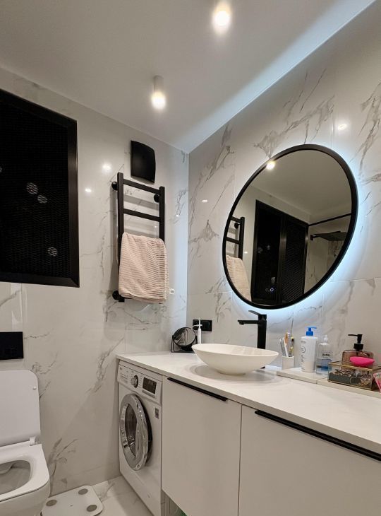 В санузле есть стиральная машина с функцией сушки очень удобно