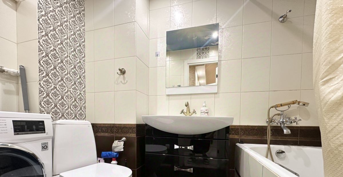 Состояние квартиры отличное. Сделан качественный евро ремонт. На полу в коридоре, на кухне, туалете и ванной плитка. В комнатах ламинат. В квартире есть все необходимое для жизни (Холодильник, стиральная машина, шкафы, кровати, столы, комоды, кухня, плита, духовой шкаф и т. д.)