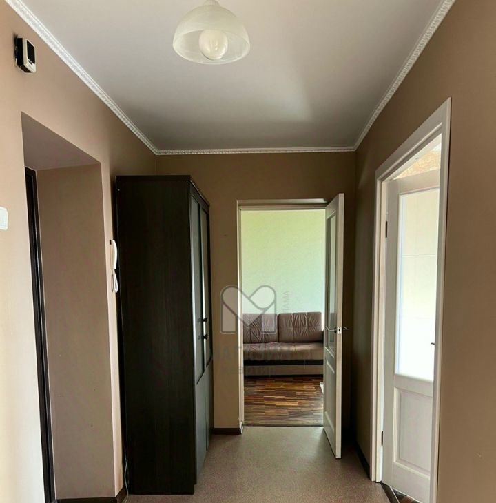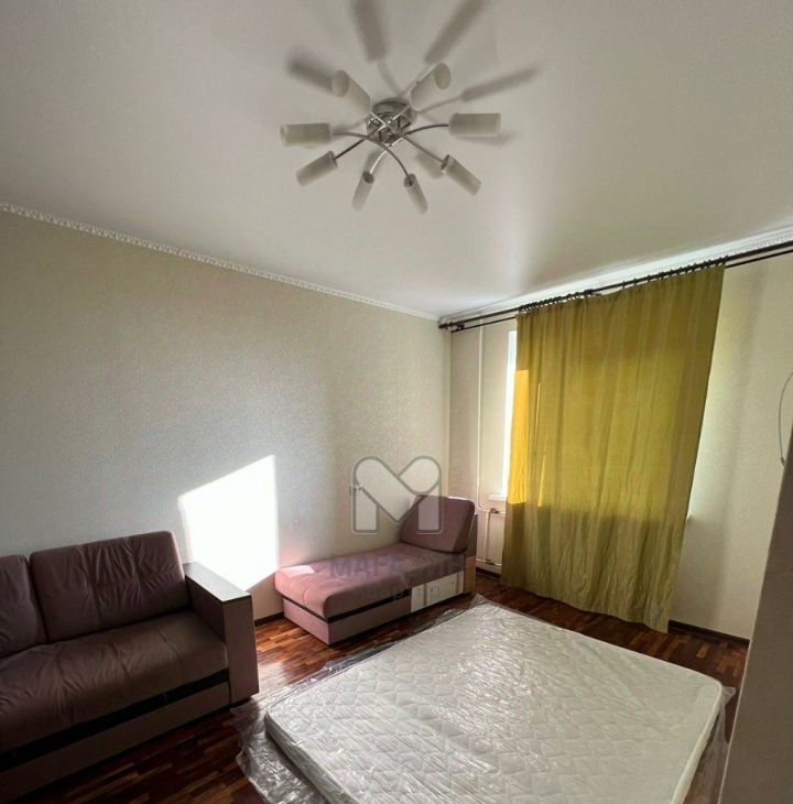 Есть всё необходимое: холодильник, плита, стиральная машина, телевизор, две новые кровати (вместо диванов на фото), шкафы. Возможен заезд со своей мебелью и техникой.