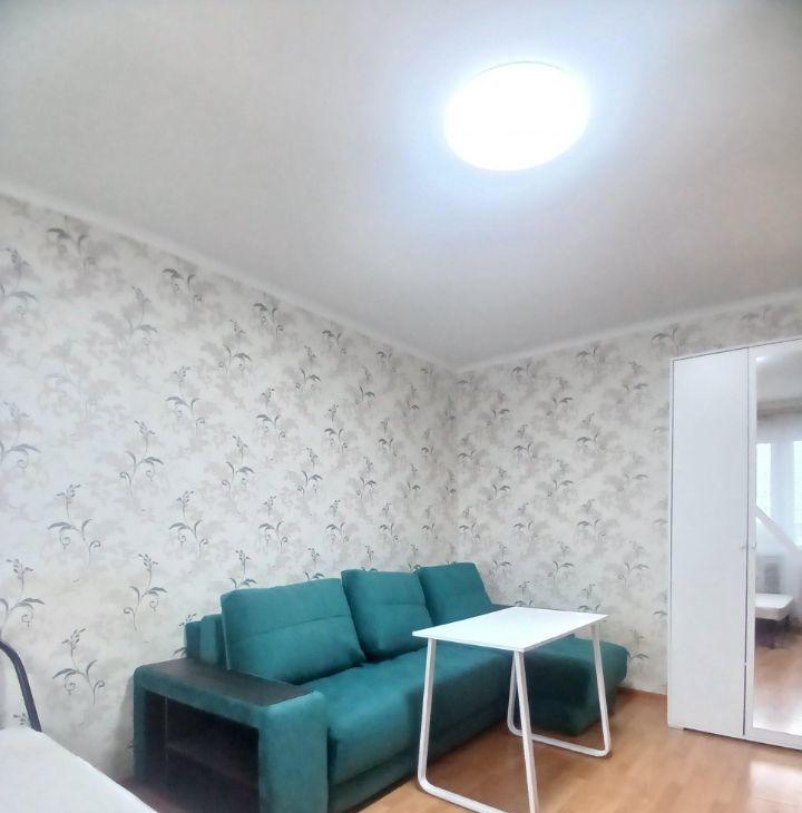 простая квартира с Эффективным набором мебели (в каждой комнате диван , кровать, рабочее место (нет на фото, приобретены), шкаф для хранения вещей, комод)