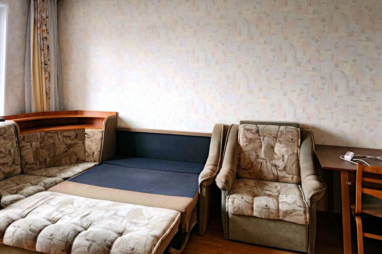 Квартира чистая, есть кровать, диван- кровать и два кресла, холодильник, стиральная машина, микроволновка.