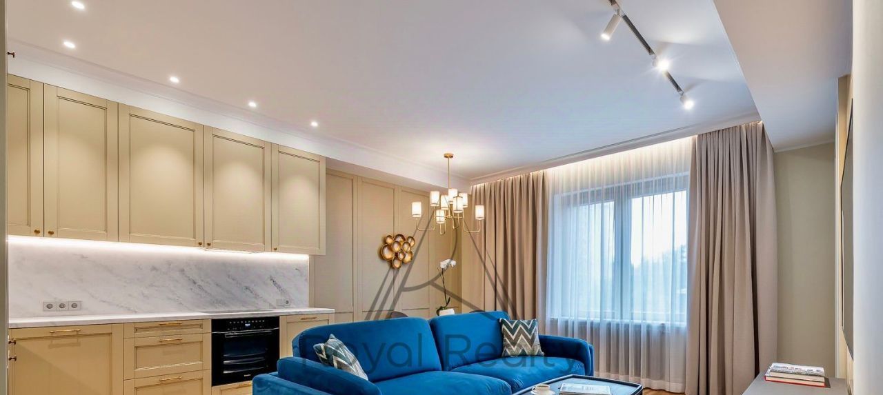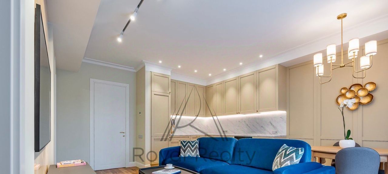 Квартира оснащена всей необходимой бытовой техникой премиум-класса. При отделке использованы качественные материалы, продумана эффективная система хранения.