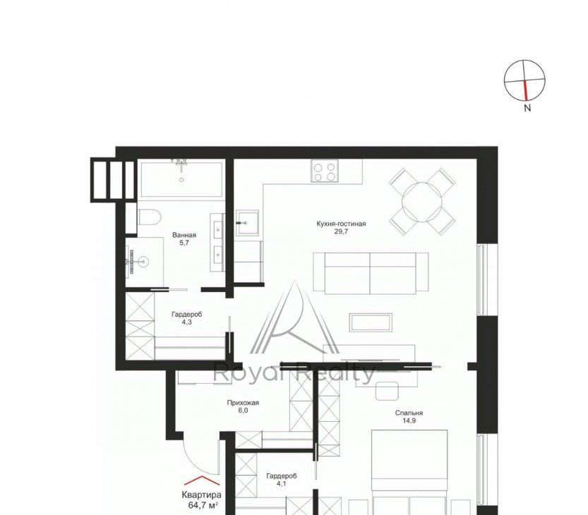 -Просторную кухню -гостиную , полностью оборудованную техникой премиум-класса;