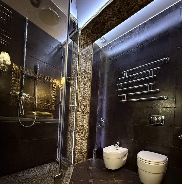 Квартира после дизайнерского ремонта, оснащена всей необходимой техникой: кондиционер, холодильник, посудомоечная и стиральная машины, телевизор. Мебель на кухне и в комнатах продумана до мелочей, чтобы вы могли сразу комфортно разместиться. Ванная комната оборудована современной душевой кабиной.