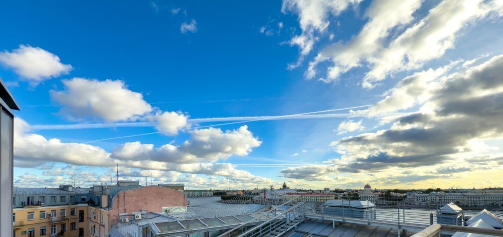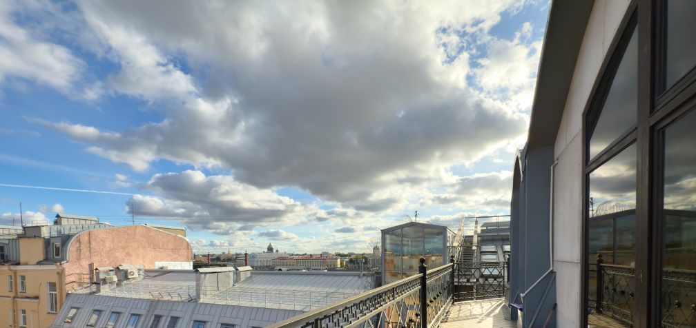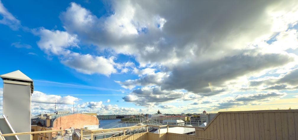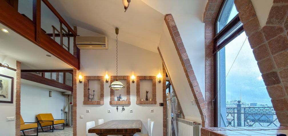 Уникальная, стильная квартира мансарда в cамом сердце Пeтроградской стороны, c неповторимым панорамным видом на акваторию реки Невы, стрелку Васильевского острова и Эрмитаж. Мытнинская набережная, д. 11.