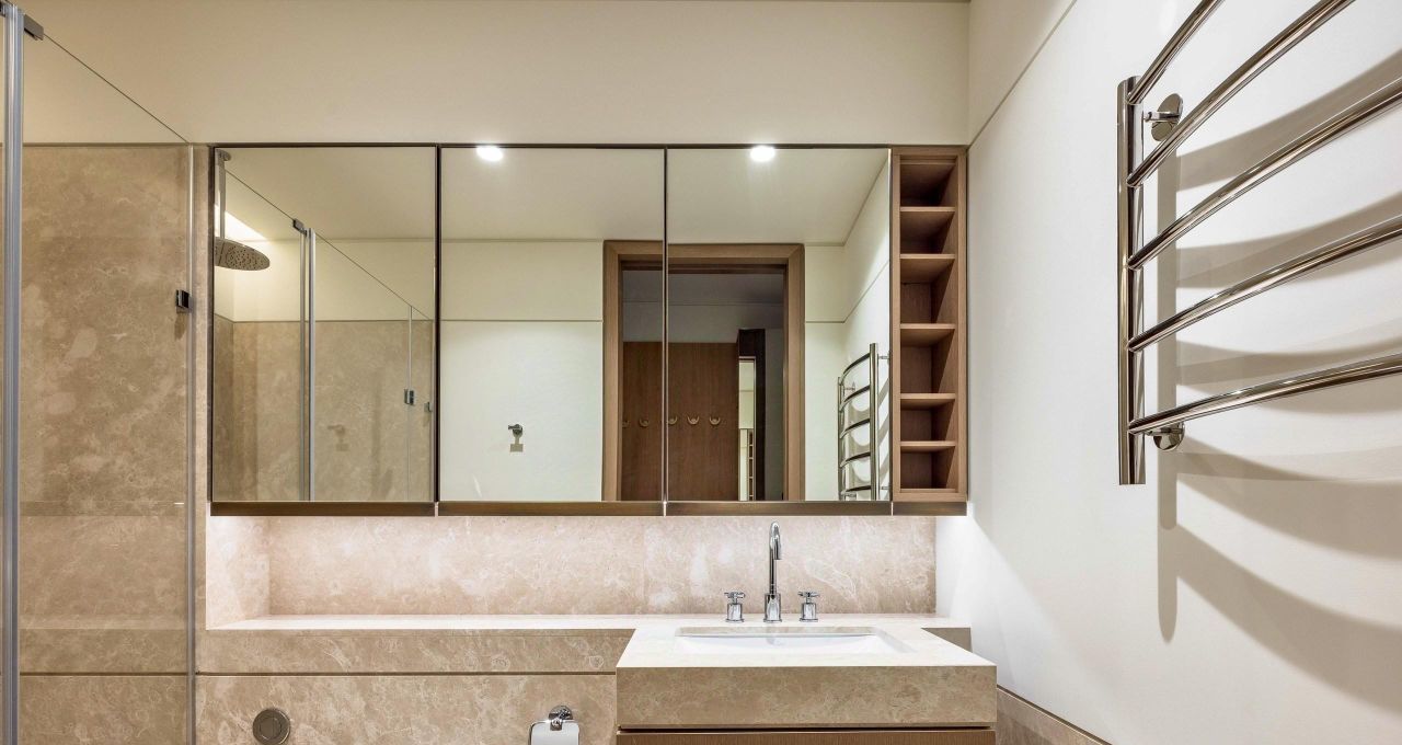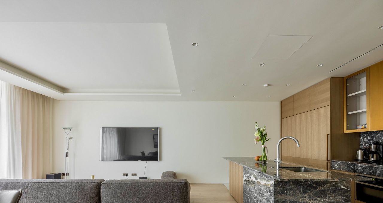 Белый мрамор и бронза в лобби, сервис уровня 5*: безопасность 24/7, консьерж, парковка, уборка, прачечная, Wi-Fi в зонах общего пользования. Комфортный климат круглый год.
