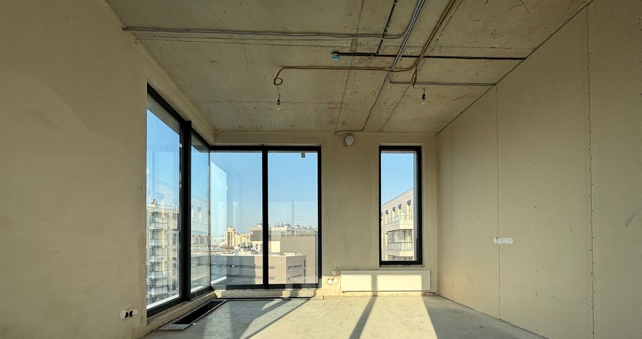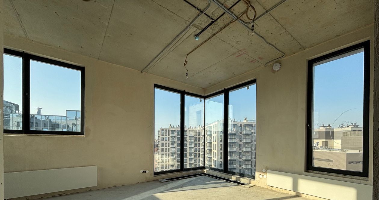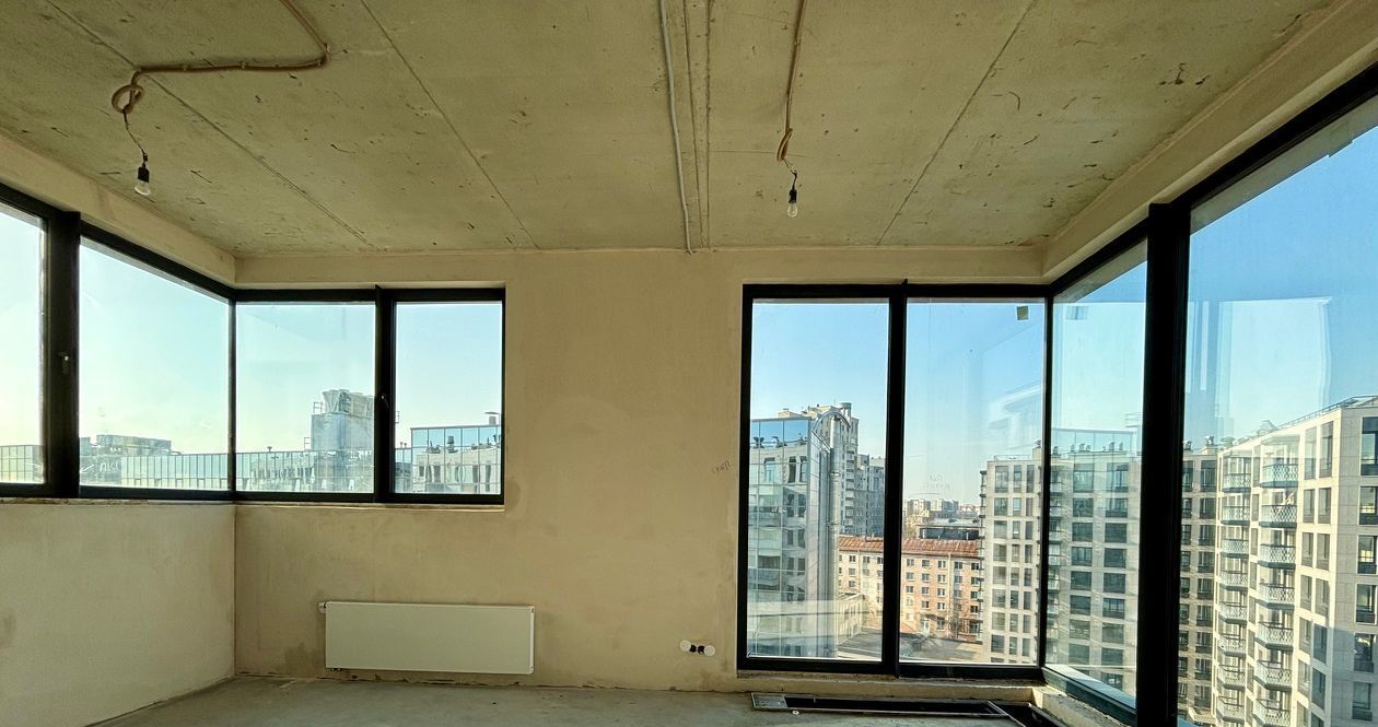 Видовая двухсторонняя квартира с панорамными окнами, потолки 3, 30 метра, кухня-гостиная 27 кв.м., две изолированные спальни, одна из которых с выходом на балкон, отделка White Box. Квартира имеет множество планировочных решений.