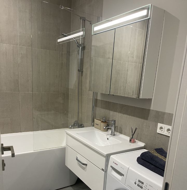В квартире есть всё необходимое для комфортного проживания. В комнатах установлена мебель, а современная техника. включает кондиционер, холодильник, телевизор посудомоечную машину, стиральную машину. В совмещённом санузле вас ждёт уютная ванна. Благодаря качественному евроремонту, квартира выглядит стильно и современно.