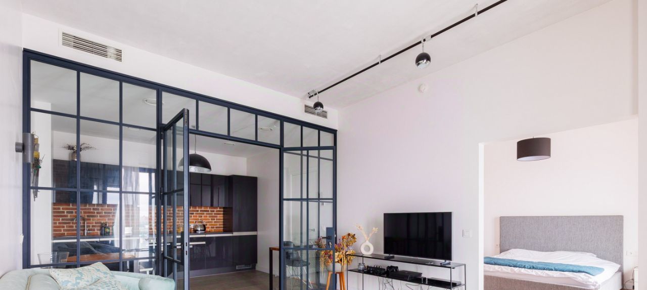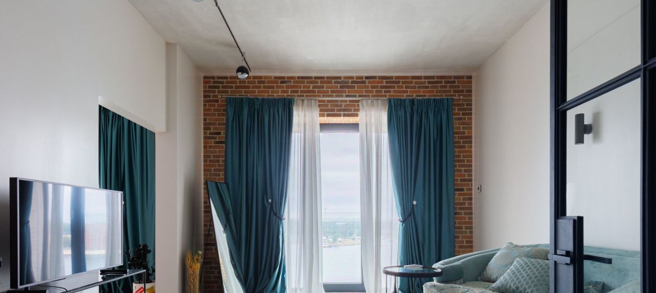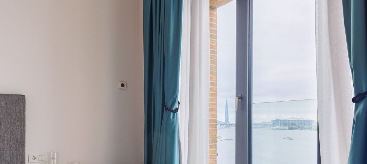 Предлагается в аренду на длительный срок стильная видовая двухкомнатная квартира с панорамным остеклением в лофт-квартале апарт-отеле бизнес-класса "Docklands" в Приморском районе по адресу: улица наб. Макарова, дом 60.