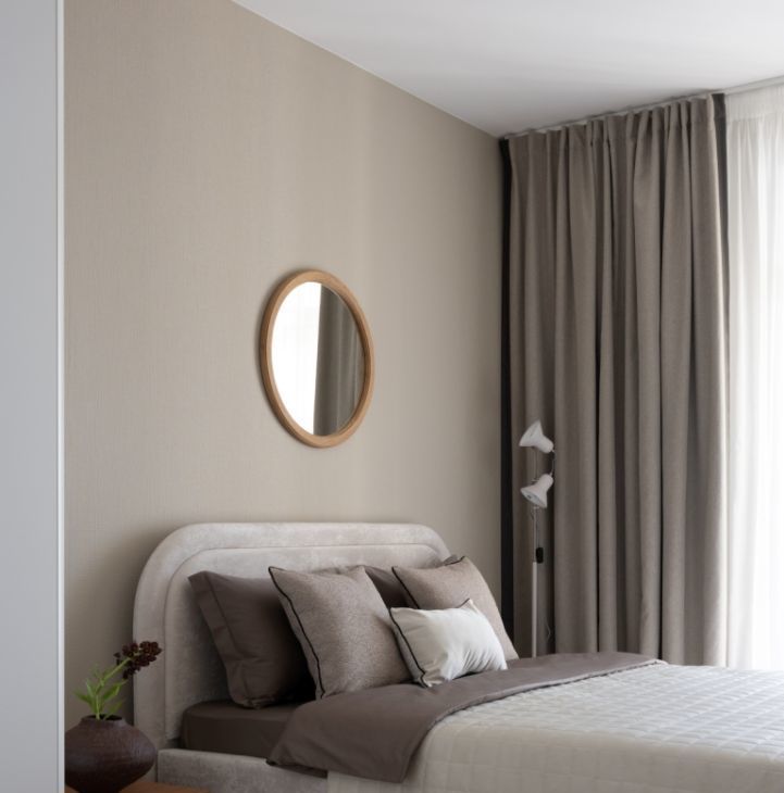 Интерьер выполнен в спокойных натуральных оттенках: дерево, бежевые и серые тона, мягкий текстиль. Ничего лишнего — только комфорт и эстетика.