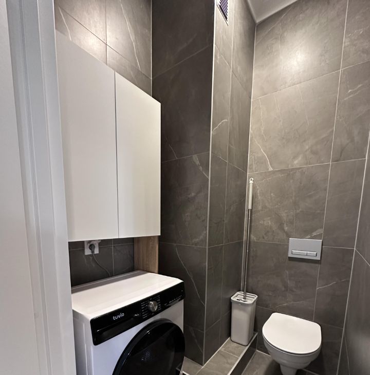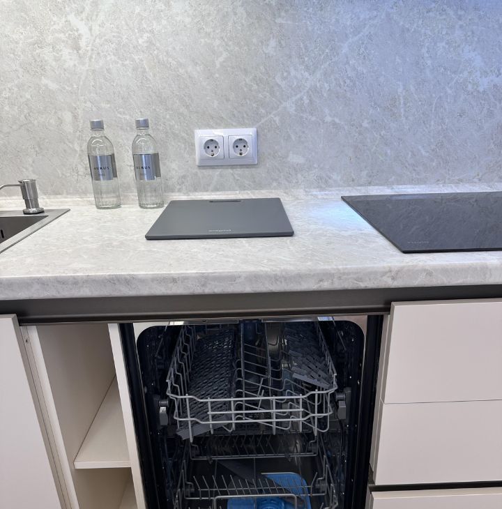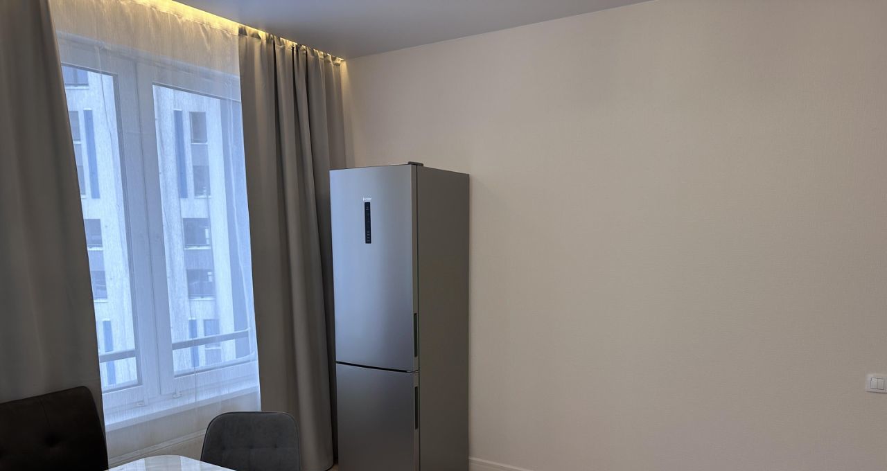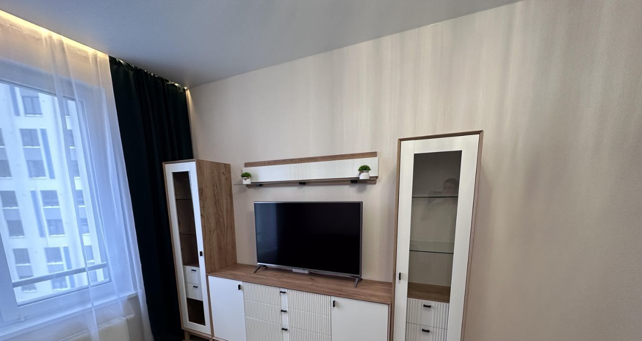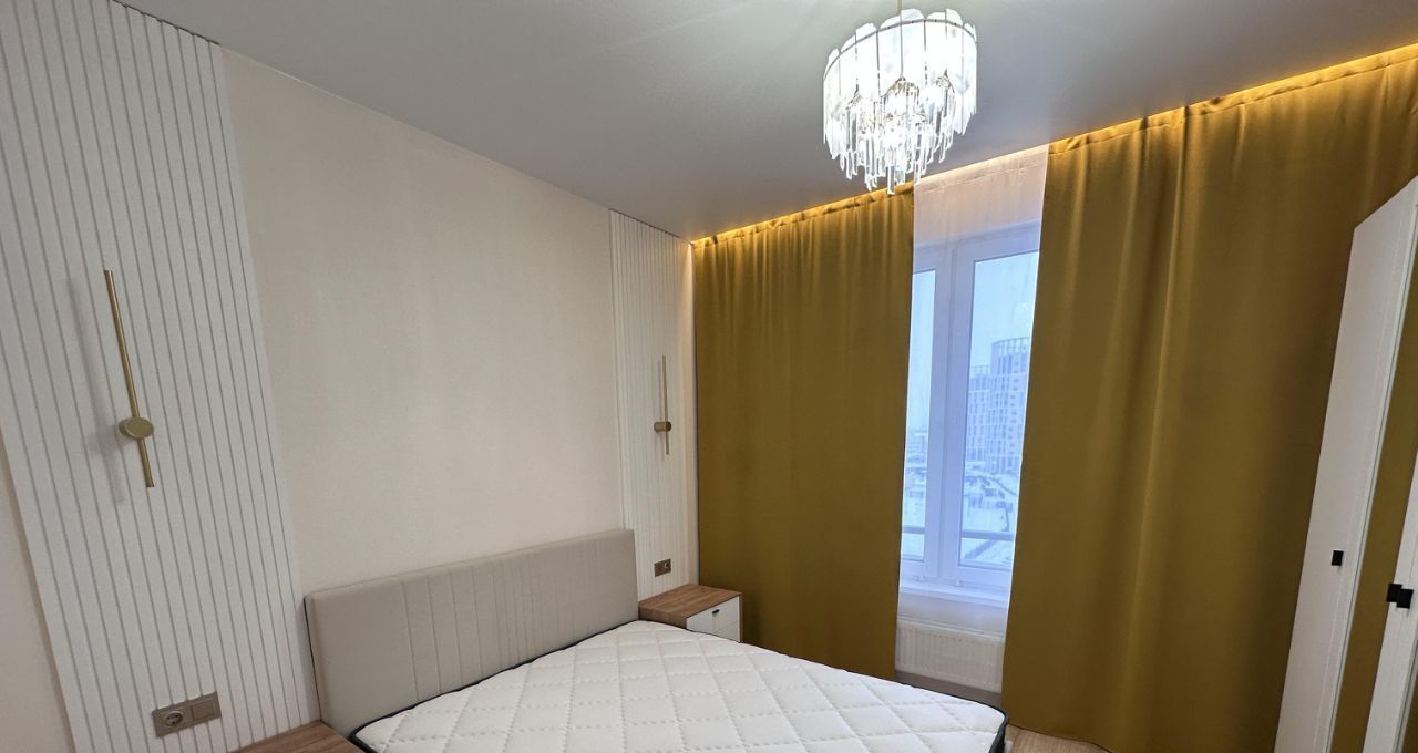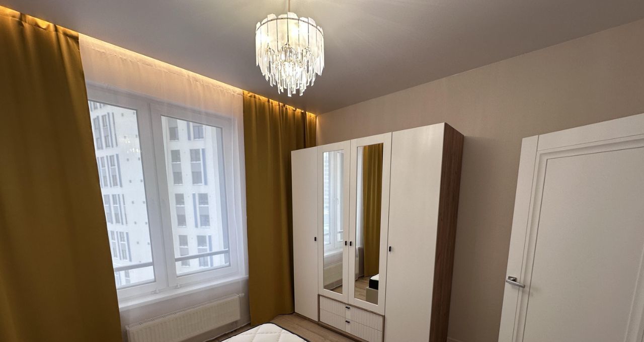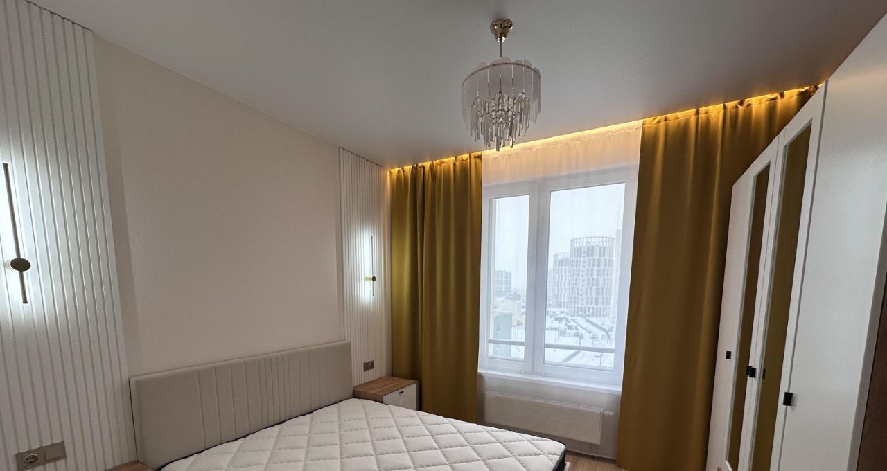 Квартира состоит из просторной кухни-гостиной, спальни с полноценной двуспальной кроватью, кабинета/спальни с раскладным диваном, двух санузлов и лоджии с окнами во двор. В сан узле установлен теплый пол. Квартира оснащена всем необходимым для комфортного проживания.