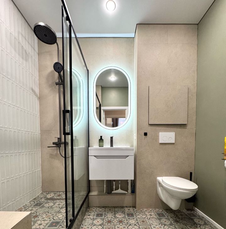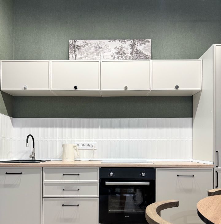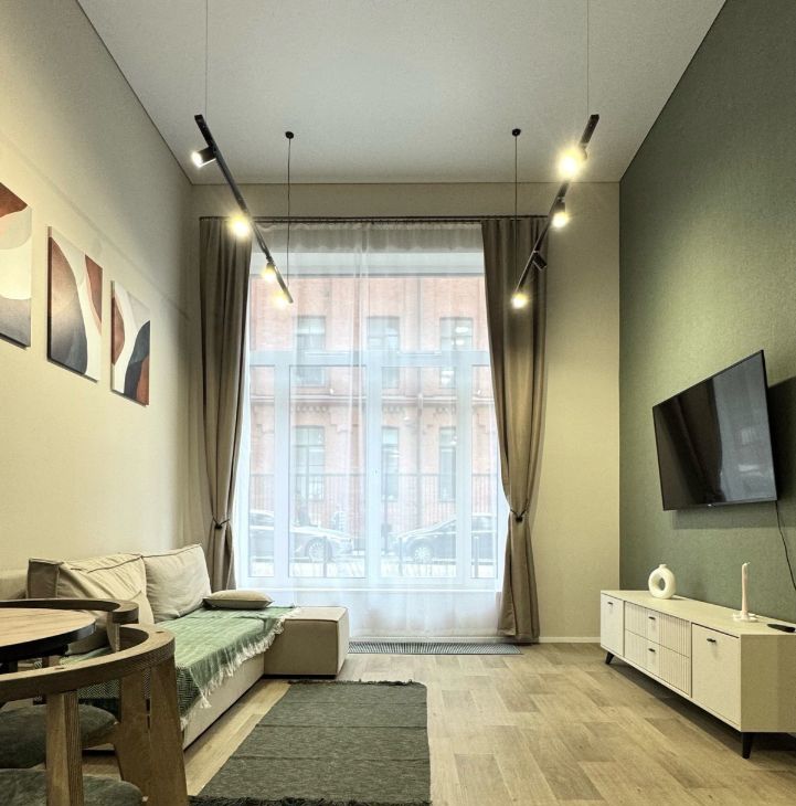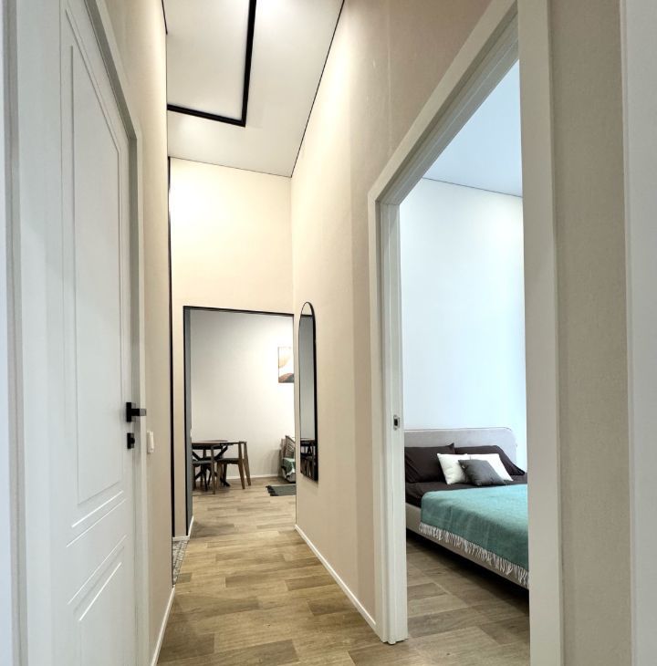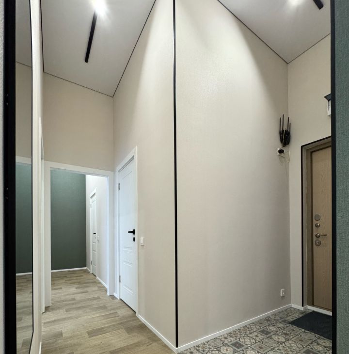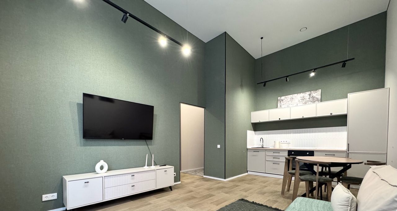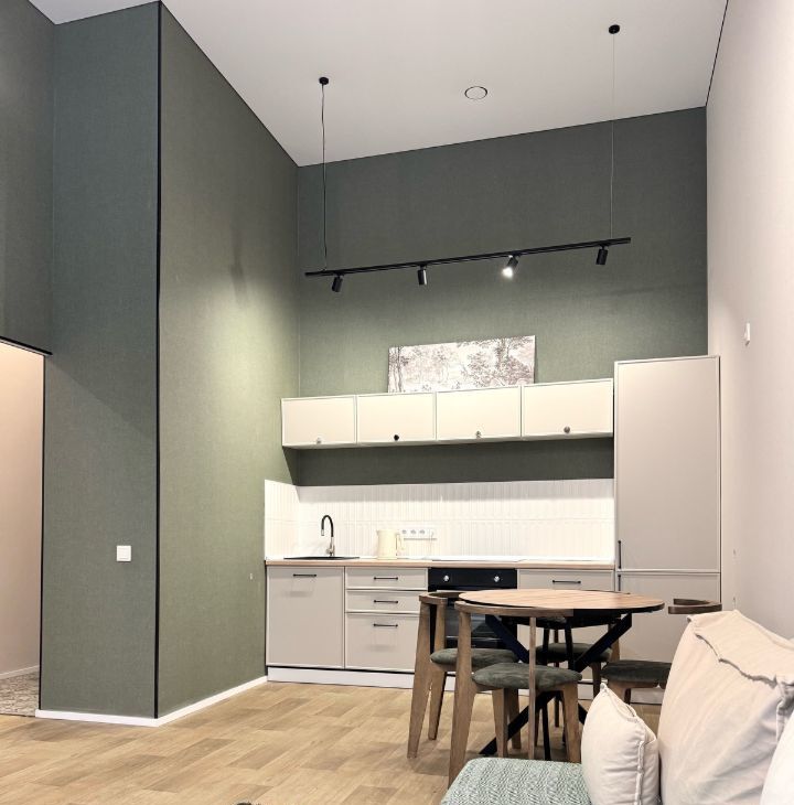 Высокие потолки формируют ощущение объёма и свободы — в квартире буквально много воздуха. Благодаря западной стороне здесь особенно приятно по вечерам: мягкий естественный свет наполняет пространство и создаёт уютную атмосферу.