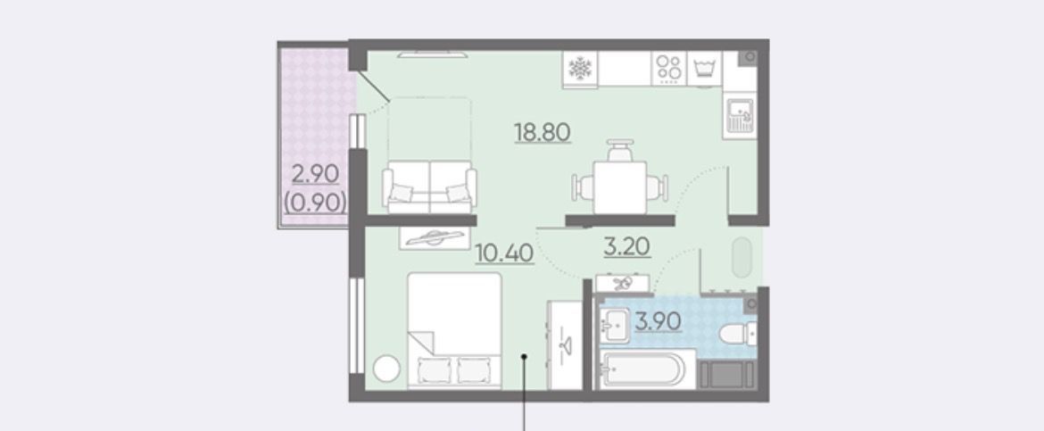 2-к кв. Санкт-Петербург наб. Реки Каменки, 19к1 (37.0 м²)
