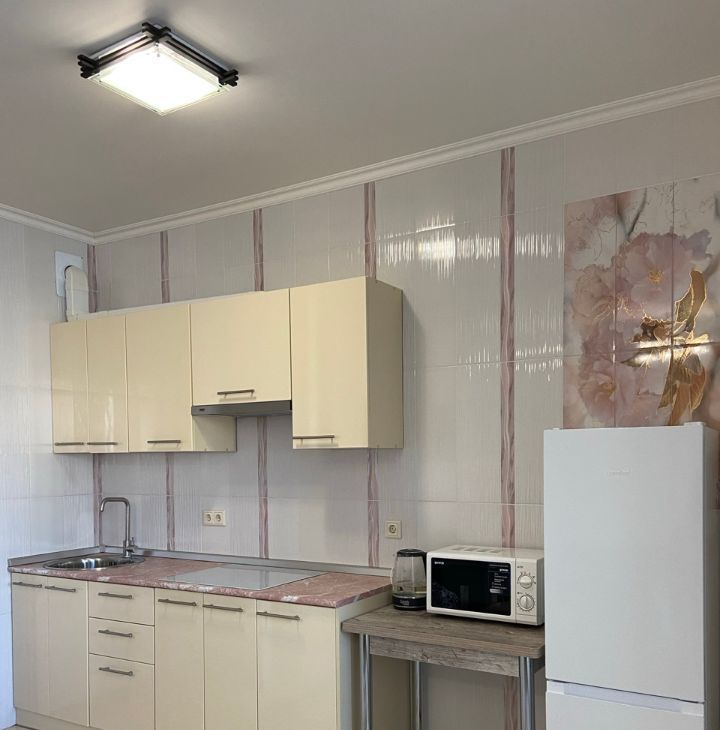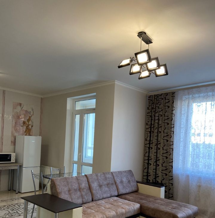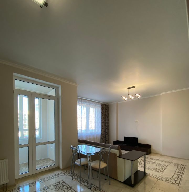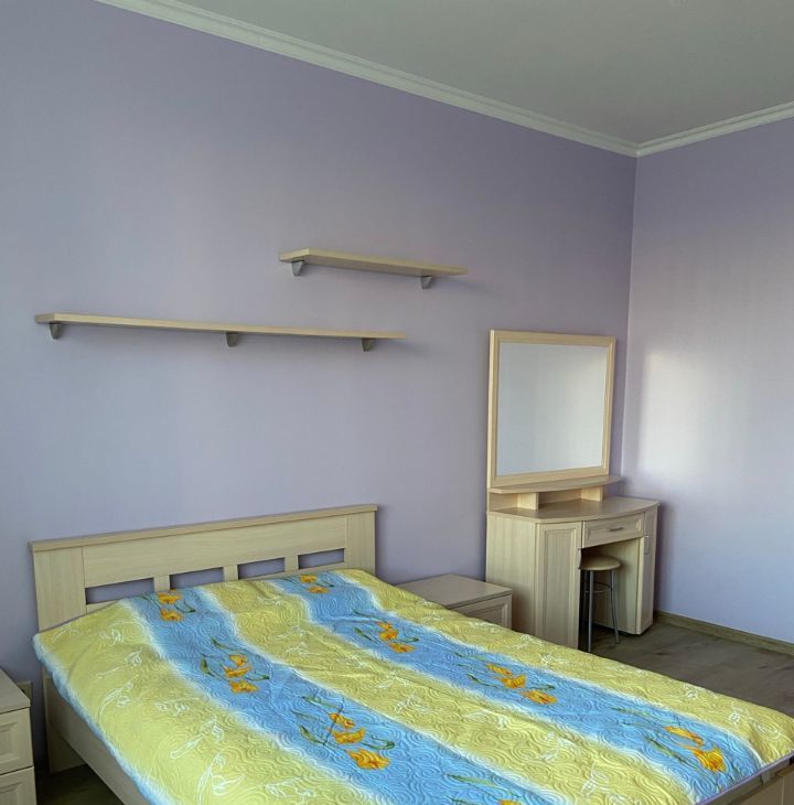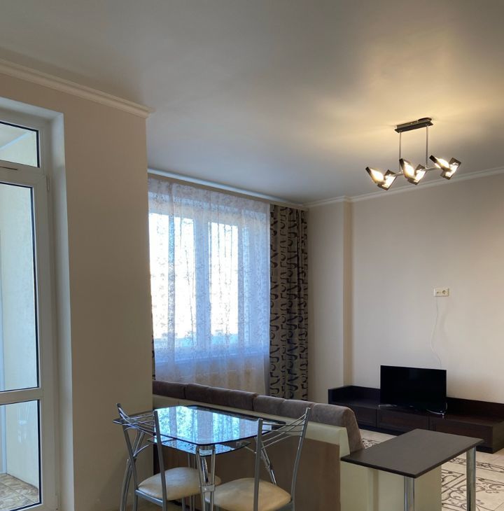 Евроремонт; планировка - спальная комната с двуспальной кроватью, кухня-гостиная с выходом на застекленную лоджию, раздельный санузел, большая прихожая