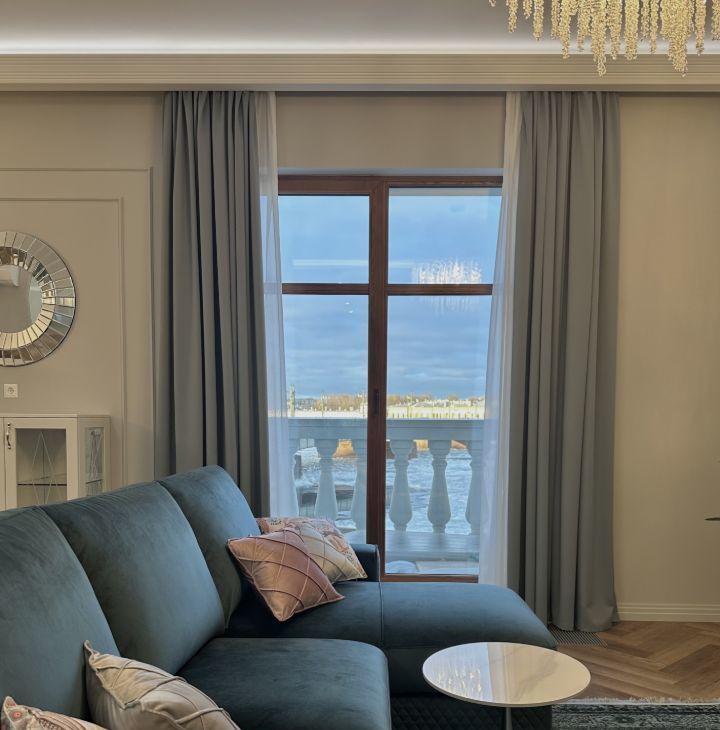 С балкона гостиной вы можете любоваться самыми знаковыми событиями Петербурга: Алыми парусами, Военно-морским парадом на День ВМФ, салютами над Петропавловской крепостью.