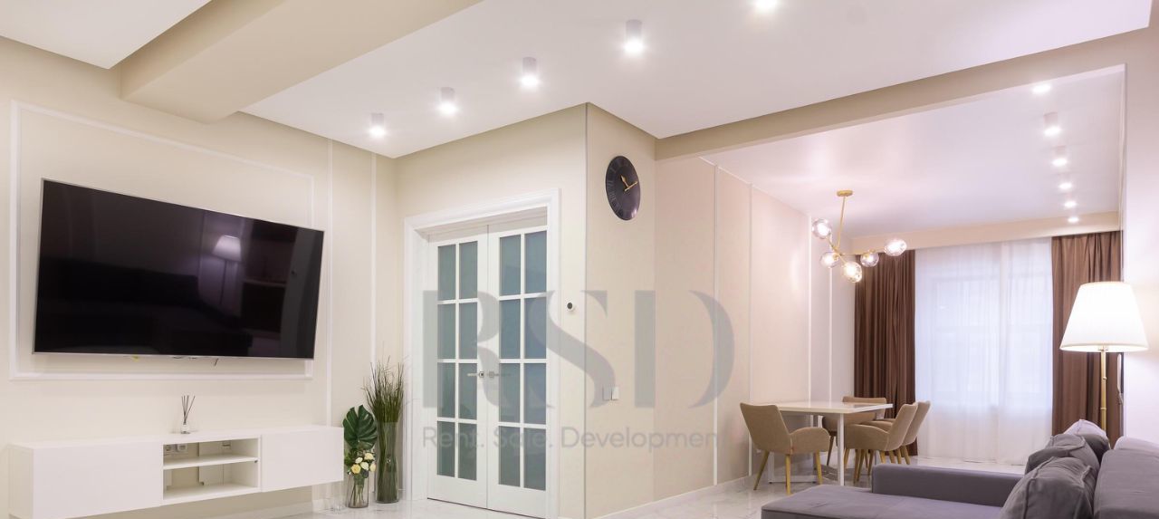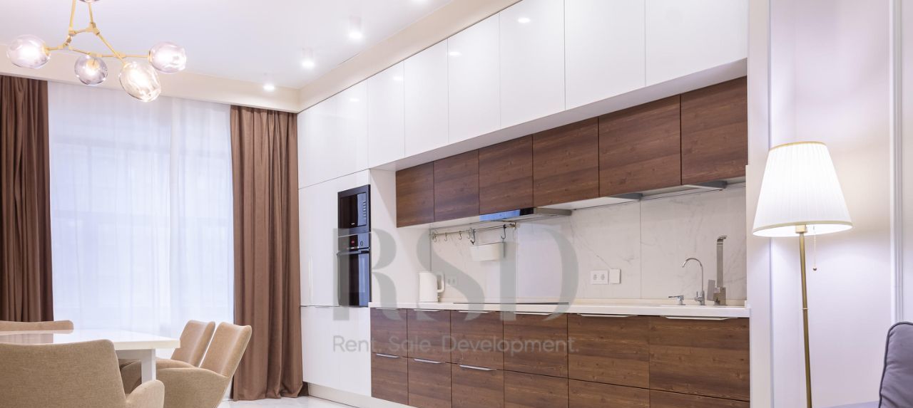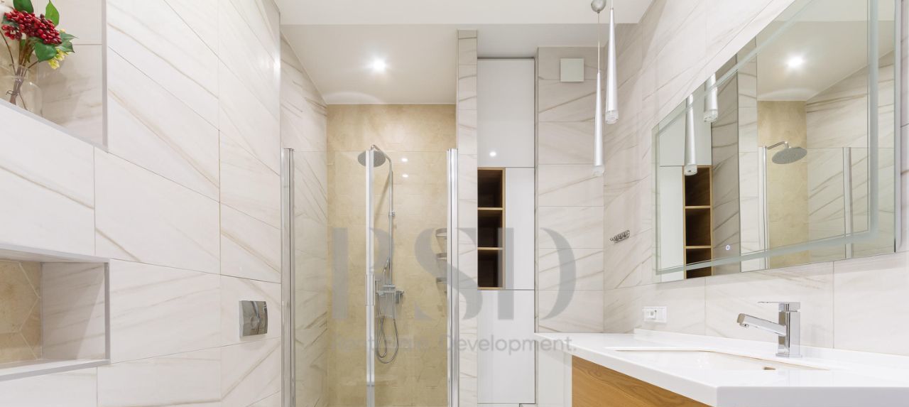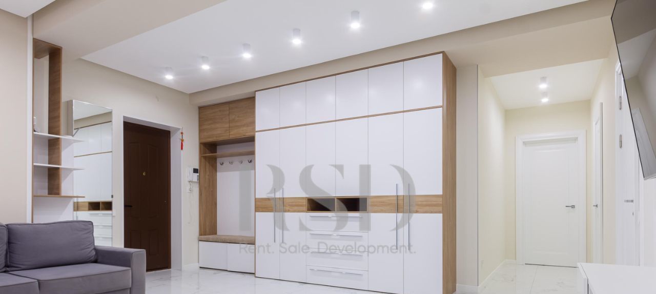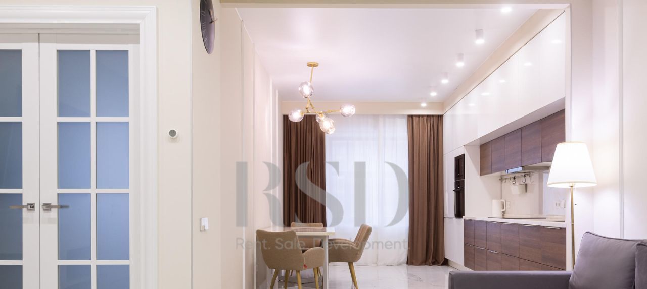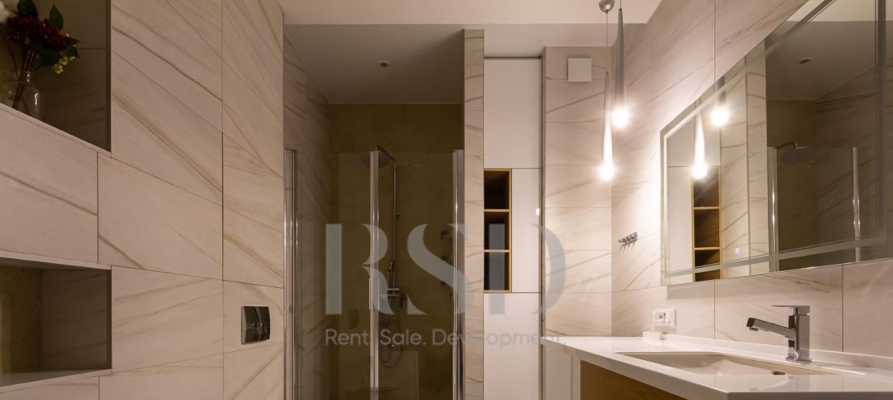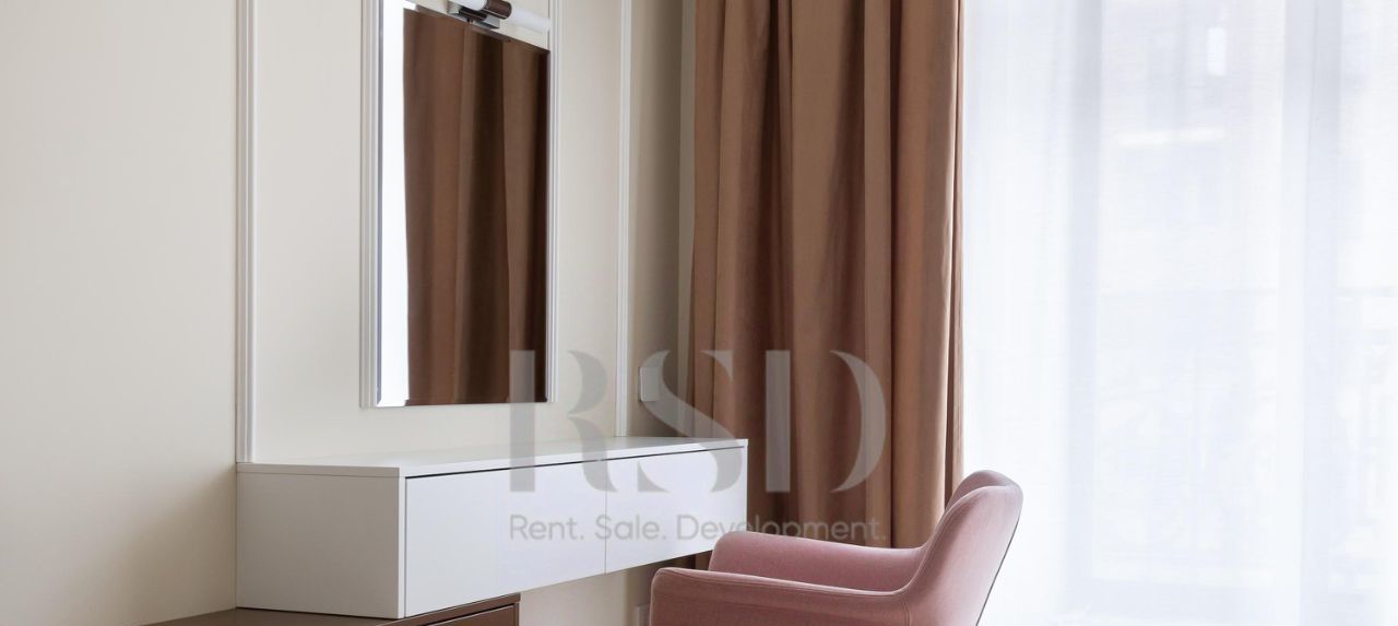 В квартире выполнен качественный ремонт, все комнаты изолированы — комфорт и приватность на каждом шагу. 2 спальни, большая гостиная, светлая и уютная кухня, санузел с ванной и душевой. Квартира укомплектована современной мебелью и техникой: варочная панель, вытяжка, посудомоечная машина, духовой шкаф, микроволновая печь, холодильник с морозильной камерой, стерильная машина, вместительные системы хранения, гардеробная.
