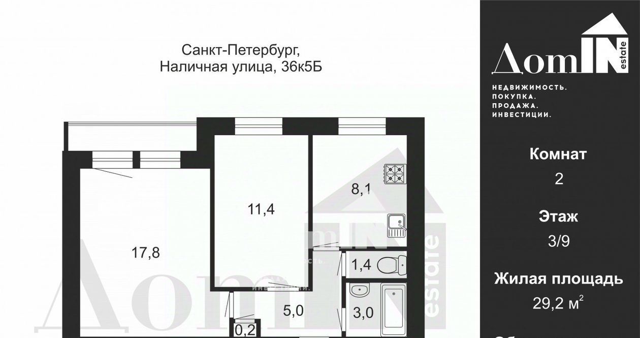 2-к кв. Санкт-Петербург Наличная ул., 36к5Б (47.0 м²)
