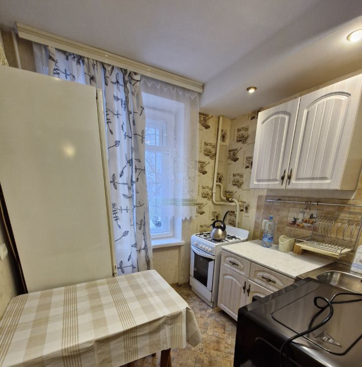 В квартире сделан косметический ремонт, что создает приятную атмосферу для проживания. На кухне и в комнате есть вся необходимая мебель, чтобы вы могли сразу заселиться. Из техники предусмотрены холодильник и стиральная машина. Ванная комната оборудована ванной. Отдельный санузел делает проживание более комфортным.