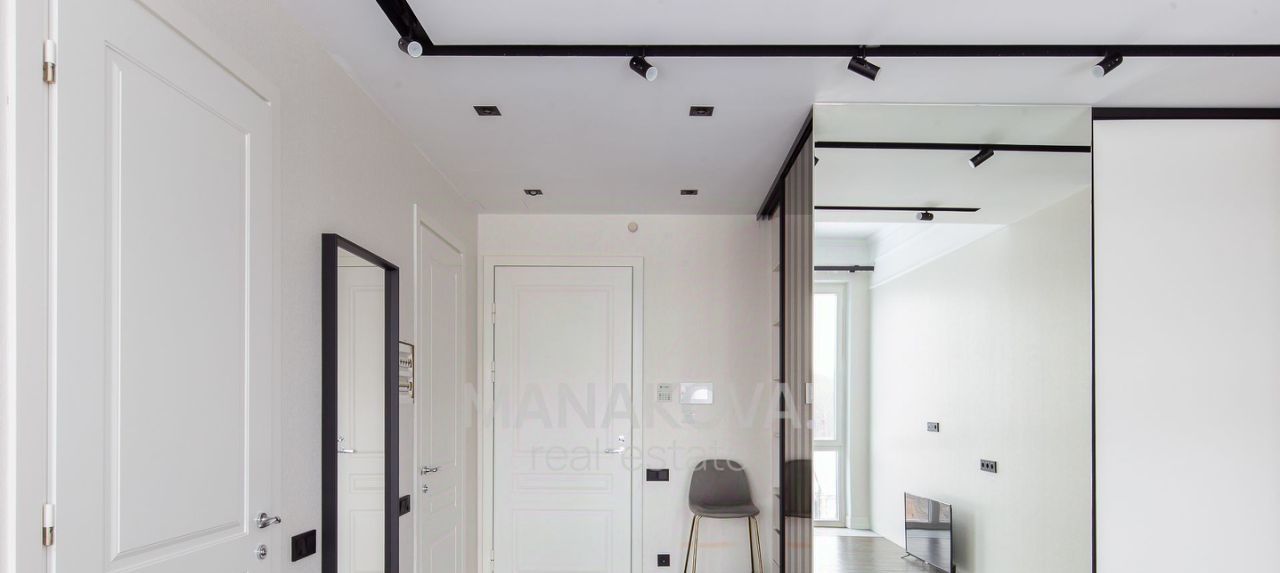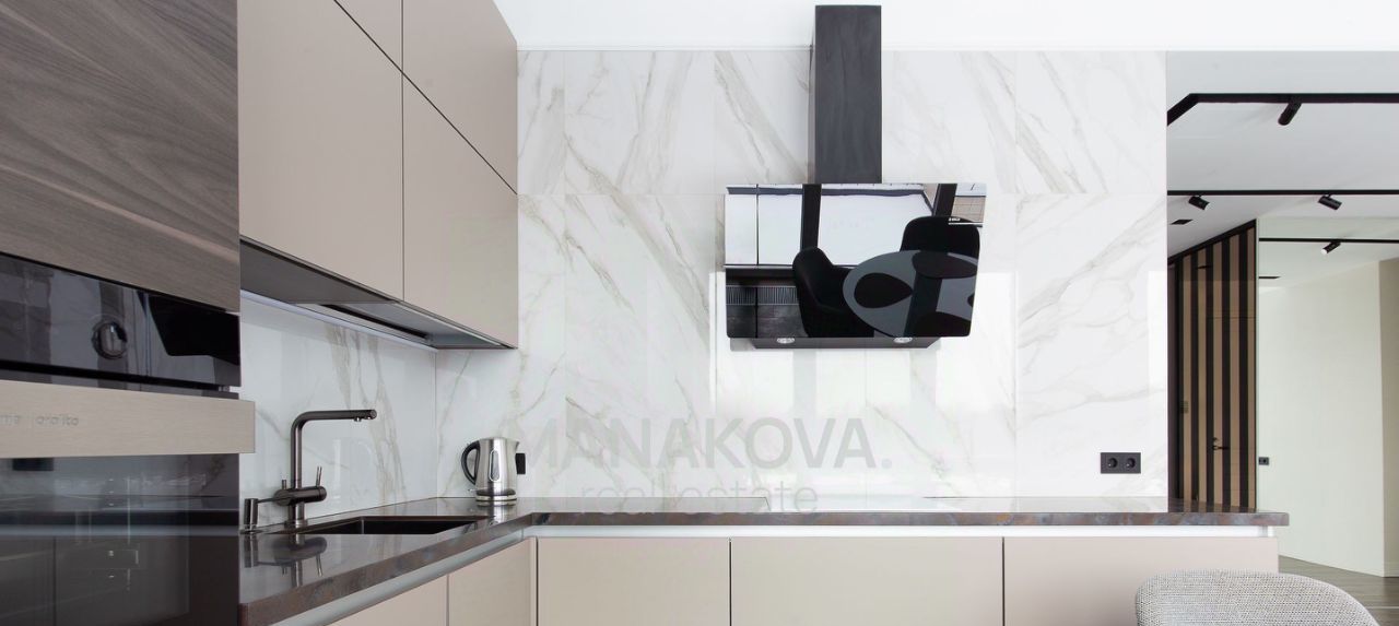 Квартира полностью готова для комфортного проживания: современная мебель, встроенная кухня и вся необходимая бытовая техника (духовой шкаф, посудомоечная машина, встроенный холодильник, стиральная машина, 3 кондиционера)