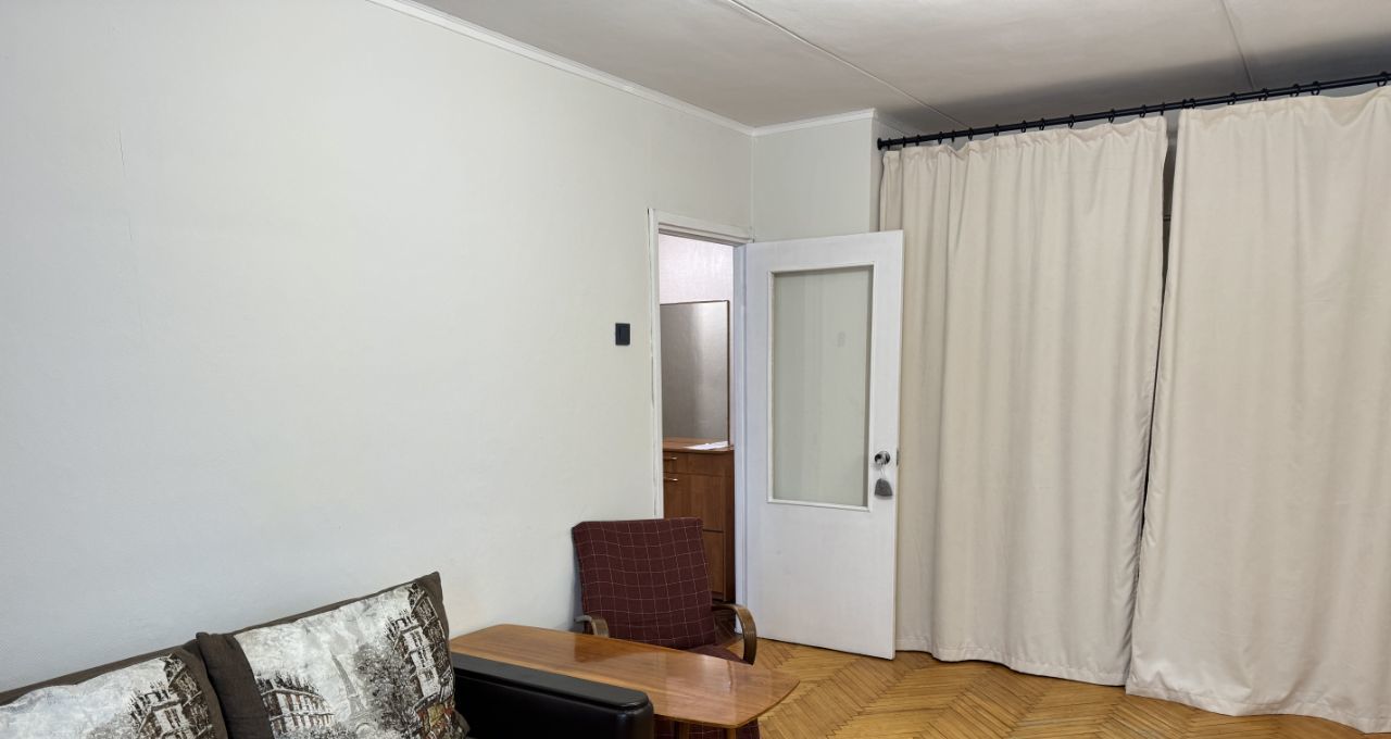 На данный момент в квартире двуспальная кровать и диван. Установлена новая кухня.
