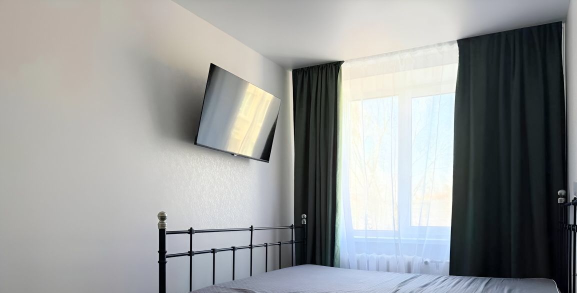 В квартире только что закончен ремонт. Сделана шумоизоляция стен и установлены двойные стеклопакеты. Сдается первый раз.