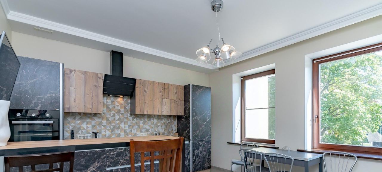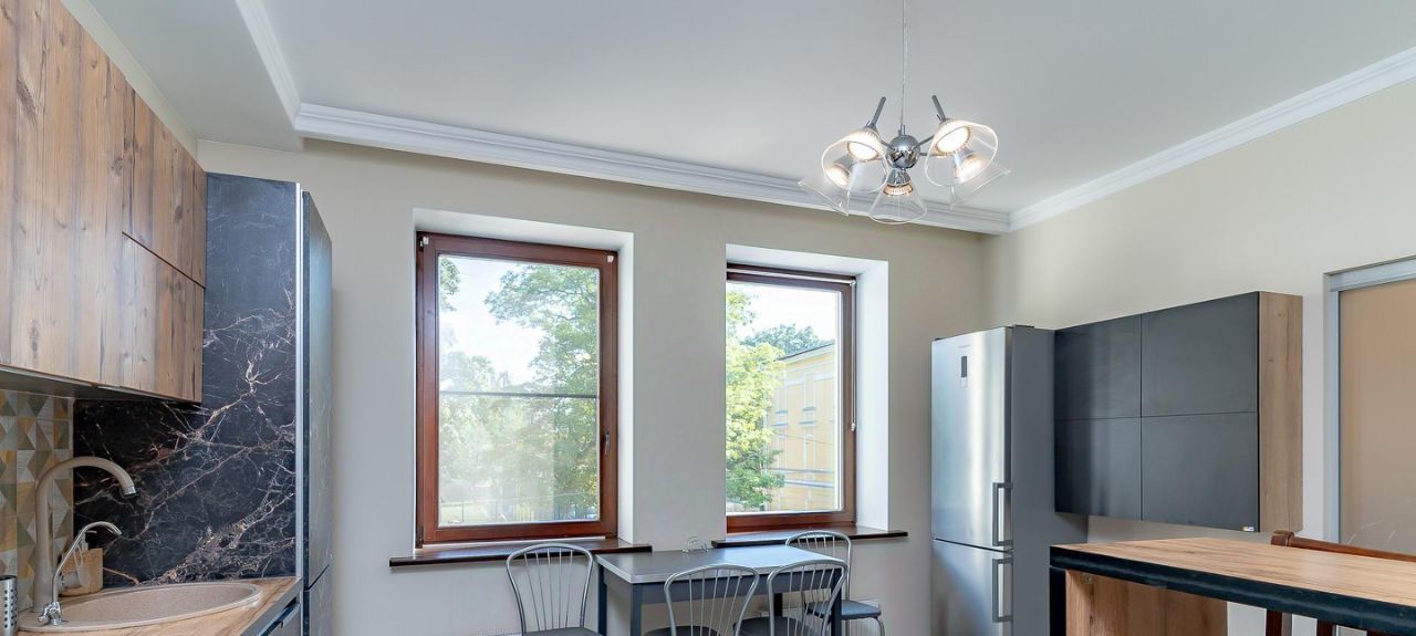 Квартира состоит из двух изолированных комнат, большой кухни-столовой, разделенной на две зоны (обеденная и барная), просторный холл. Два раздельных санузла (один с полноценной ванной и гостевой санузел). Гардеробная. Полы с подогревом (кухня-столовая, холл, санузлы).