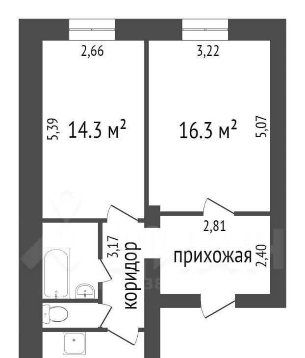 2-комнатная квартира: Санкт-Петербург, Дальневосточный проспект, 25к1 (57.2 м²)