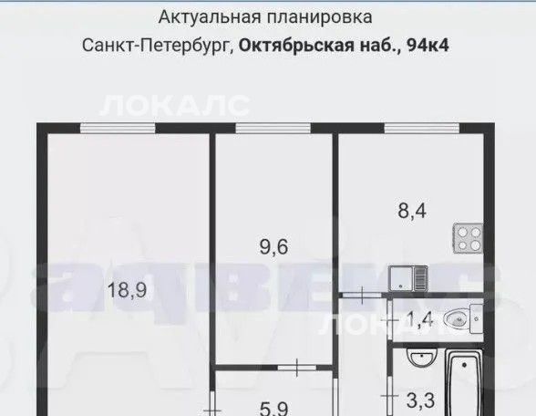 2-к кв. Санкт-Петербург Октябрьская наб., 98К4 (48.0 м²)