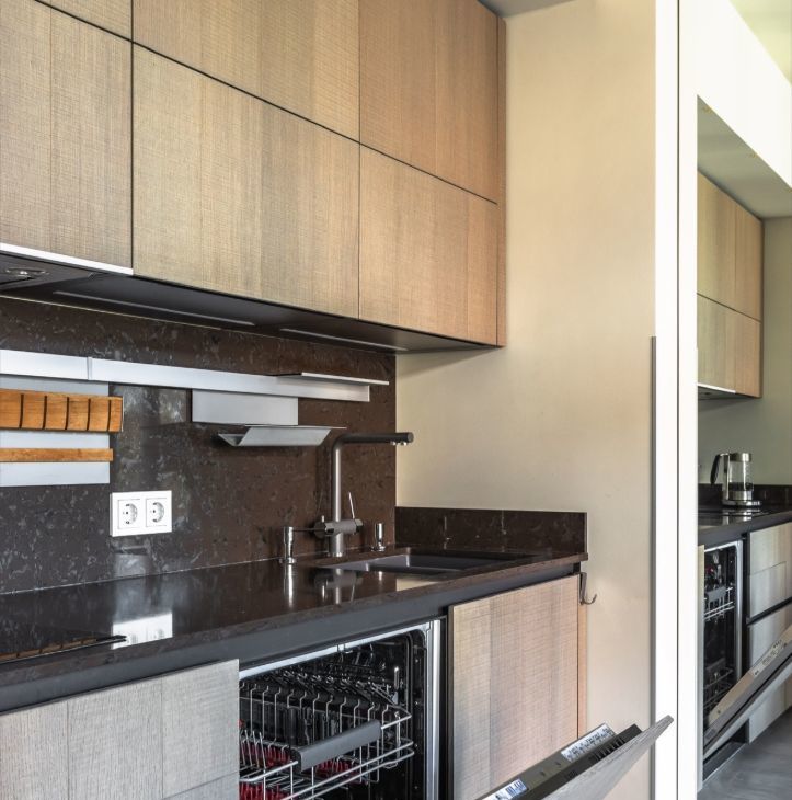 Квартира полностью меблирована, установлена вся необходимая бытовая техника (плита, холодильник, стиральная машина, посудомоечная машина, микроволновая печь, духовой шкаф, утюг и пылесос.