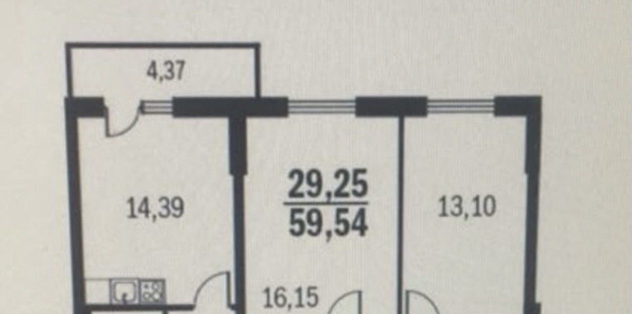 2-к кв. Санкт-Петербург Парашютная ул., 42к1 (60.0 м²)