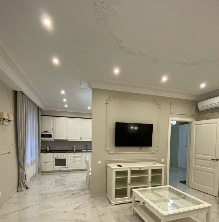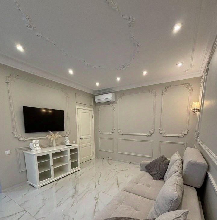 В квартире есть всё необходимое для комфортного проживания. Дизайнерский ремонт выполнен с использованием качественных материалов, создавая уютную атмосферу. На кухне и в комнате установлена современная мебель. Из техники в вашем распоряжении: кондиционер, холодильник, посудомоечная машина, телевизор и стиральная машина. В ванной комнате установлена душевая кабина. Санузел совмещённый и отдельный, что очень удобно для семьи.