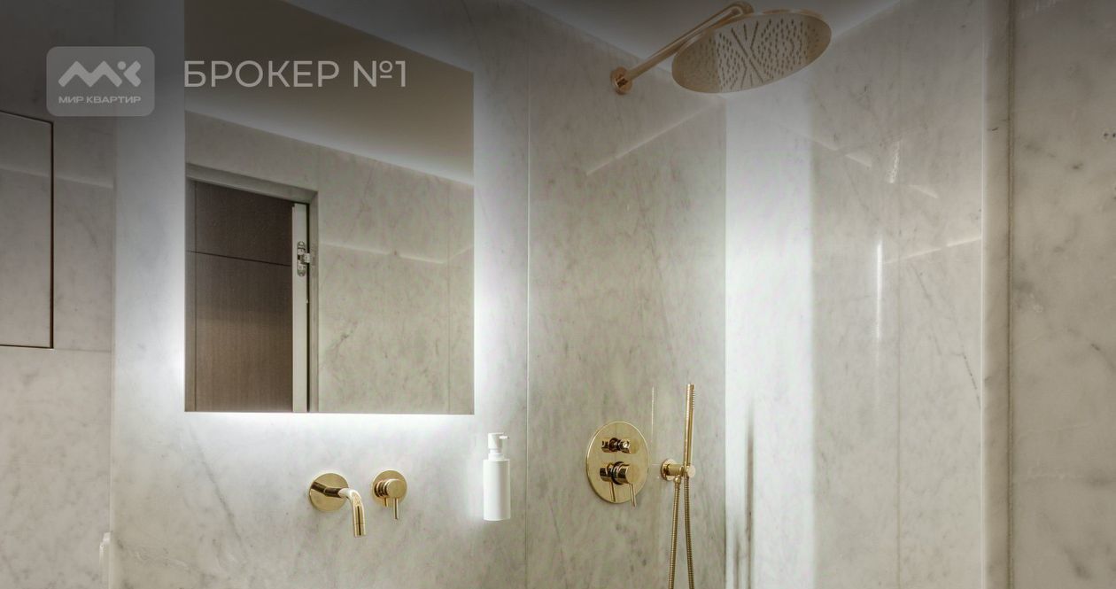 Мастер-спальня с системой хранения. Со своим санузлом с ванной и душевой выполненных из мрамора.