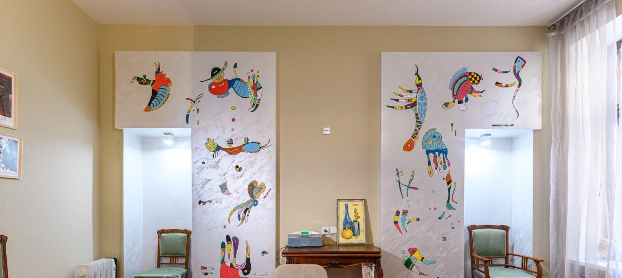 Сдаётся стильная двухкомнатная квартира с дизайнерским ремонтом в историческом кирпичном доме 1875 года постройки. Дизайн стен оформлен профессиональным художником по мотивам работ Кандинского, антикварная мебель, большая кровать 200 на 200 с ортопедическим матрасом, раскладной диван 160 200 и односпальная кровать