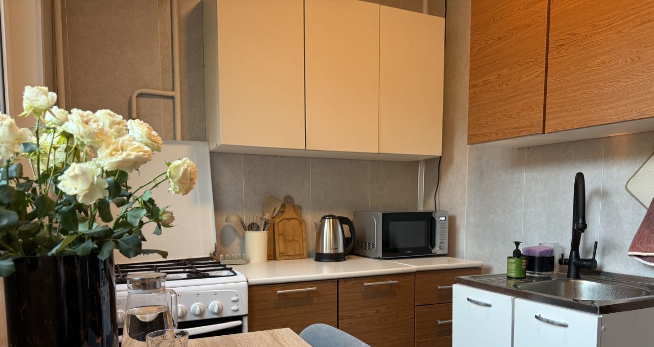 В квартире выполнен косметический ремонт. Есть всё необходимое для комфортного проживания: холодильник, микроволновка, чайник, телевизор и стиральная машина.