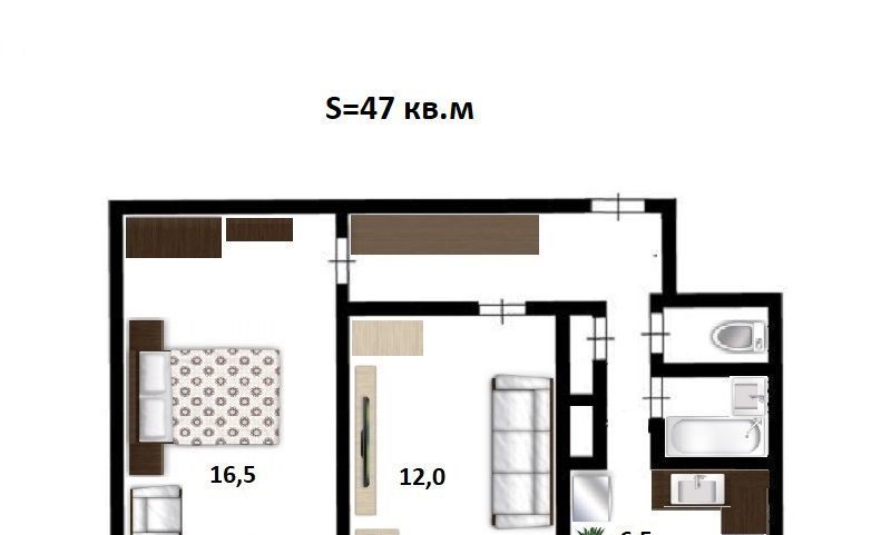 2-к кв. Санкт-Петербург Петергофское ш., 1К1 (47.0 м²)