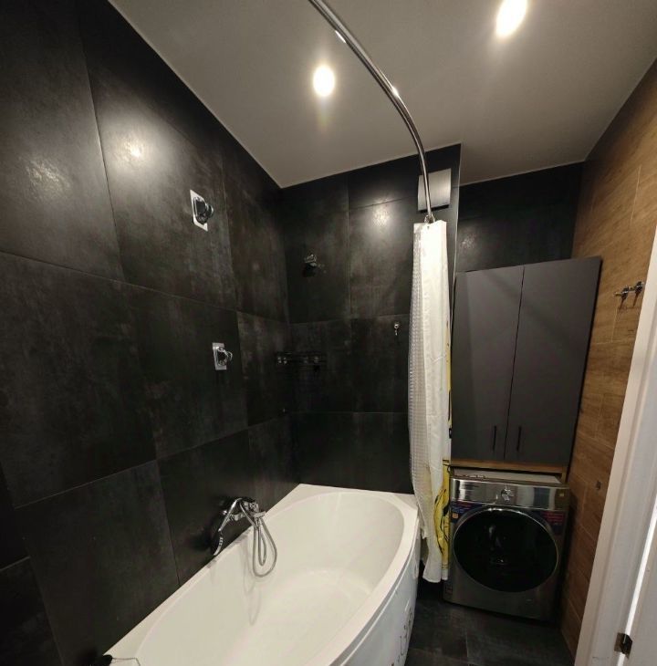 Межкомнатные двери без порогов, просторная прихожая и большая угловая ванна.