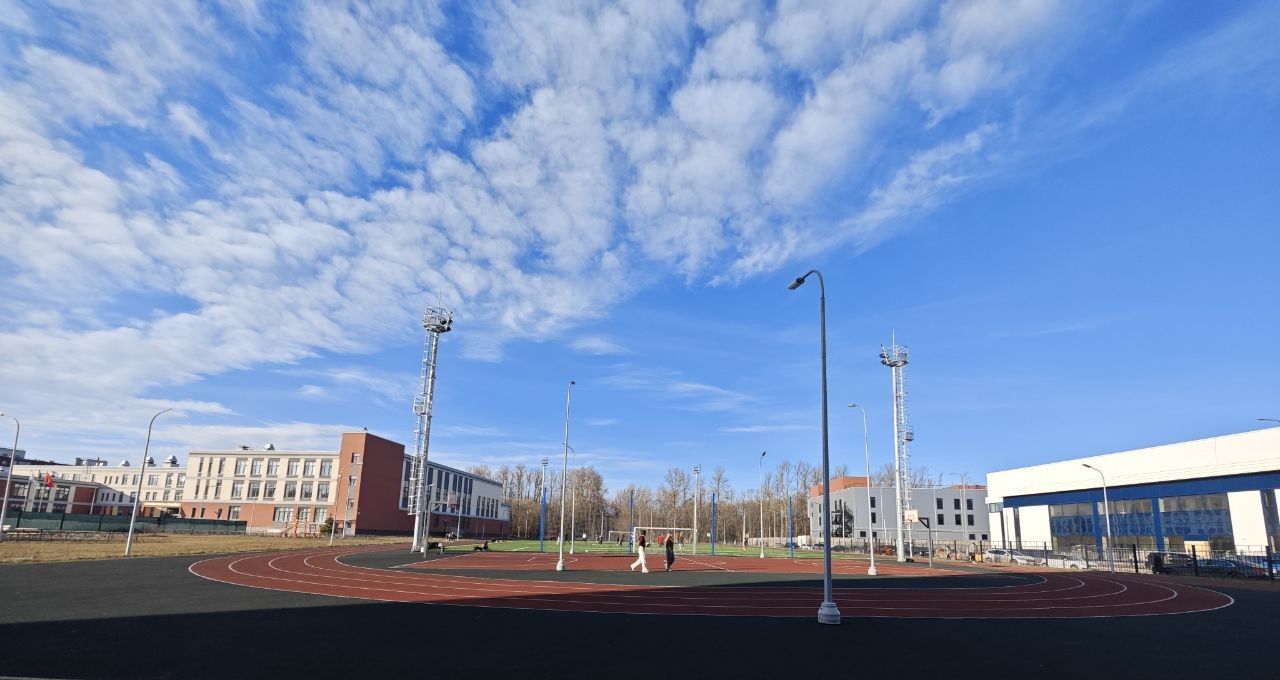 Новая школа со стадионом прямо под домом.
