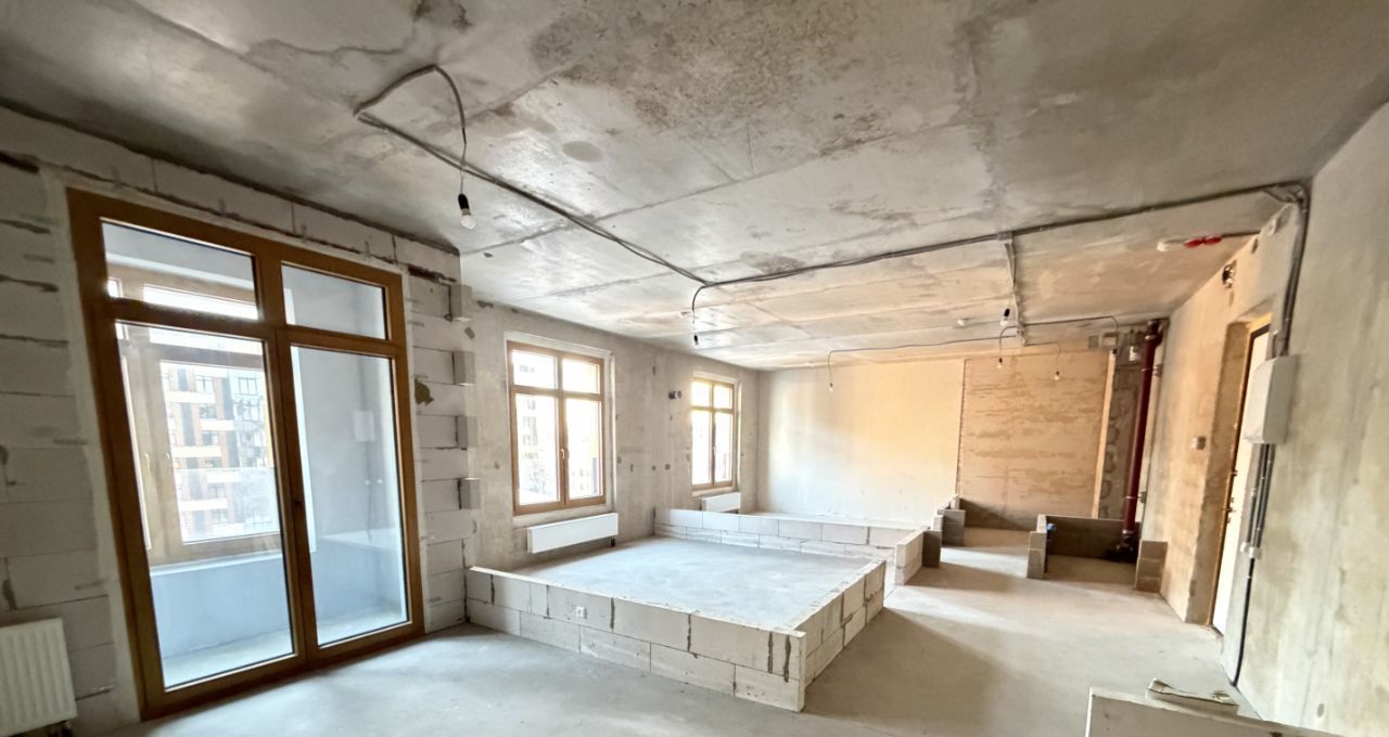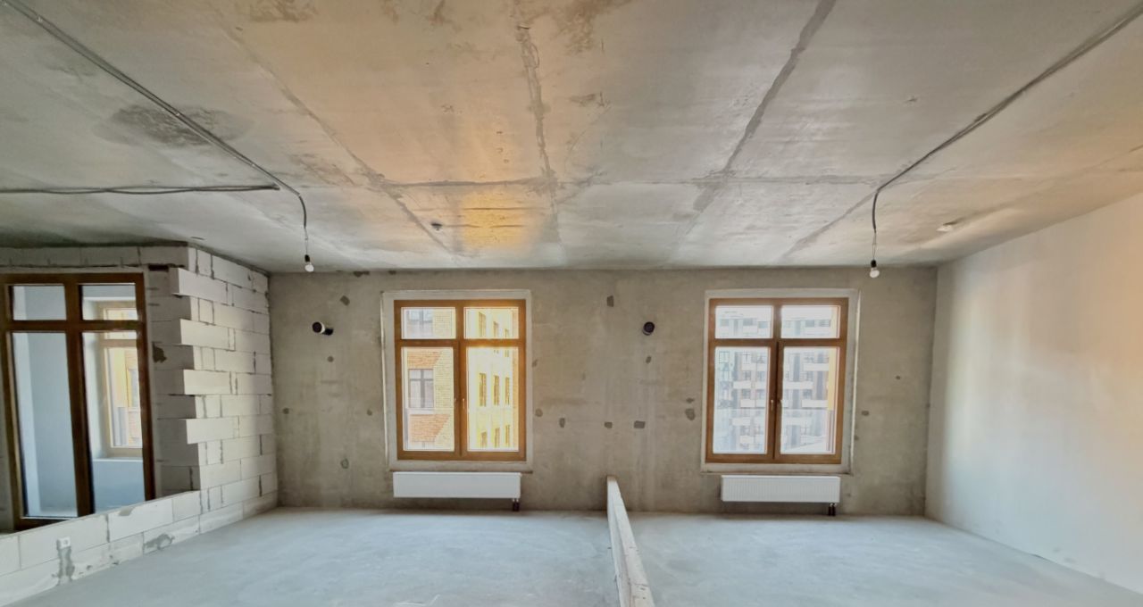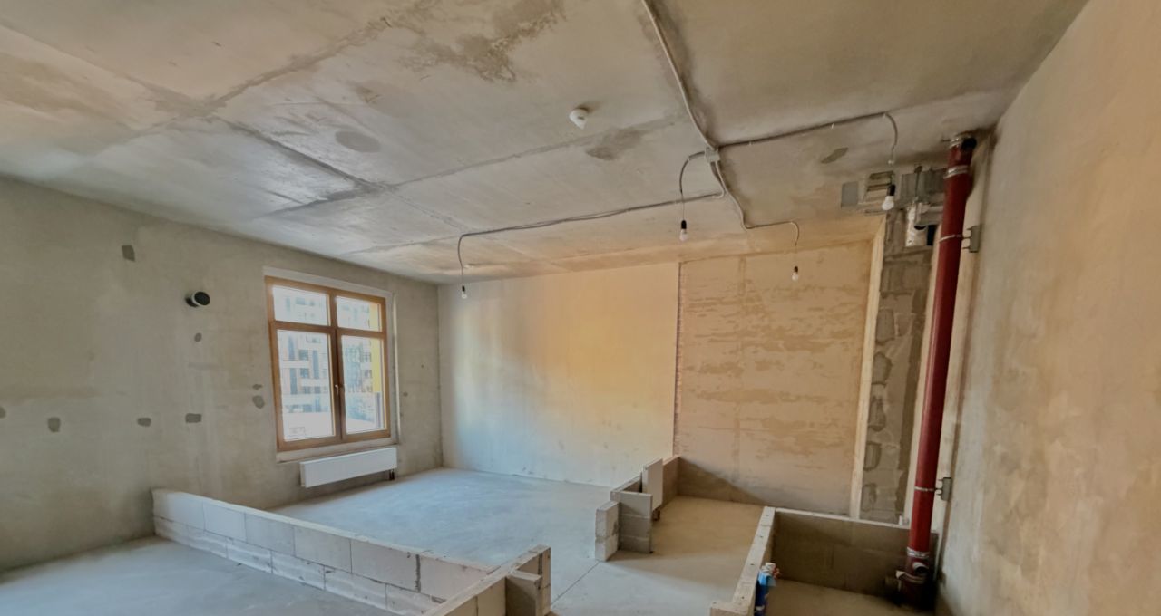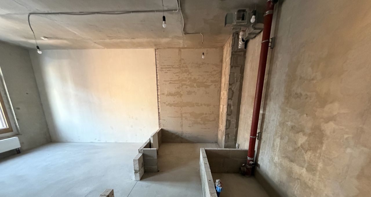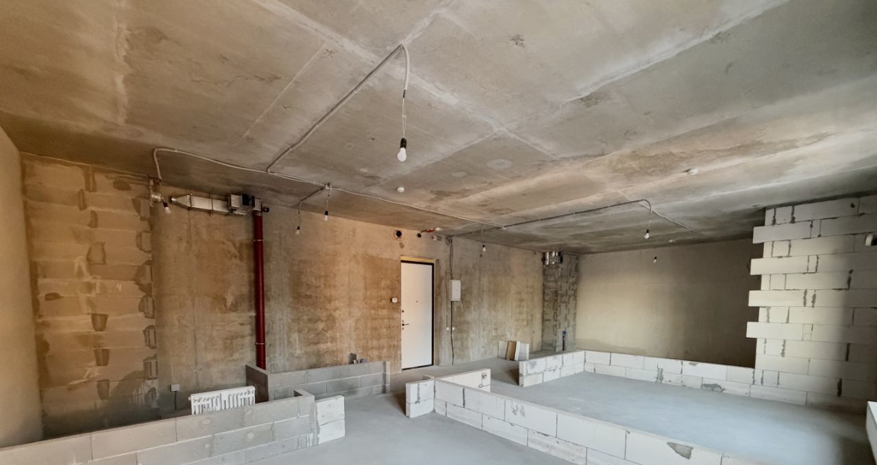 Квартира продаётся без отделки, что позволяет создать интерьер полностью под себя.