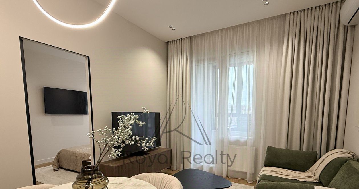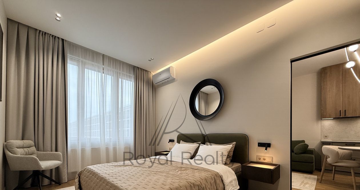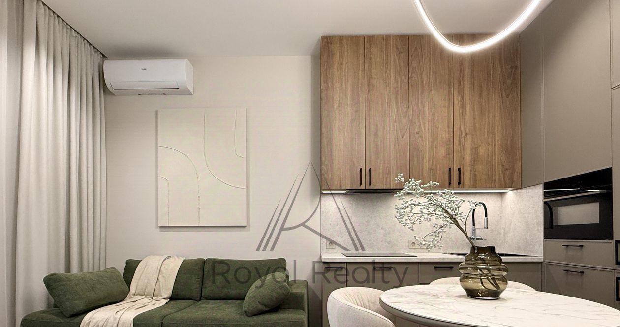 Предлагаем в аренду квартиру с дизайнерским ремонтом в современном минималистичном стиле. Уникальная цветовая палитра, в которую входят оливковый, графитовый, бежевый и натуральное дерево, гармонично объединяет все пространства и создает уютную атмосферу.