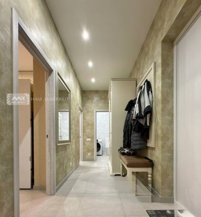 Квартира оснащена всей необходимой мебелью и техникой. Есть отличные места хранения. В зоне кафеля установлена система теплого пола.