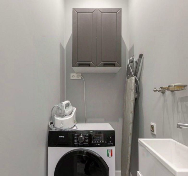 Комфортная планировка содержит в себе одну изолированную спальню со своей гардеробной, еще одна гардеробная в просторной прихожей, там же санузел, отдельная постирочная зона и просторная кухня-гостиная с ТВ-зоной и зоной отдыха.
