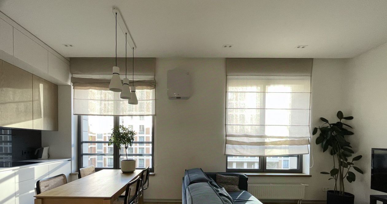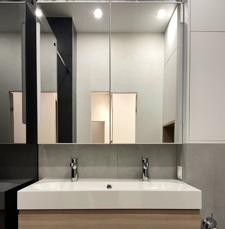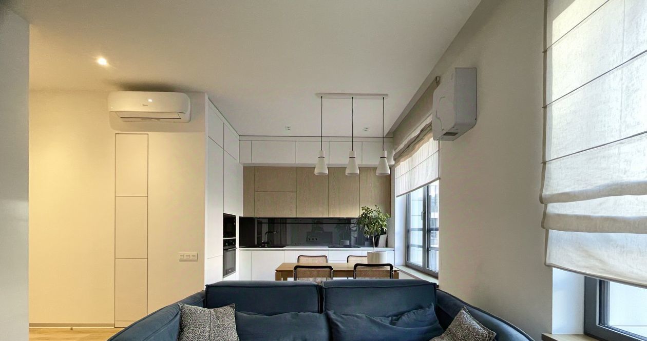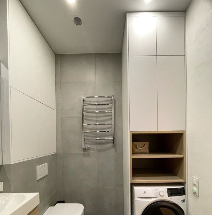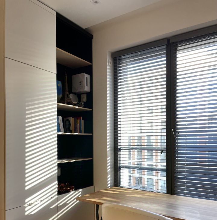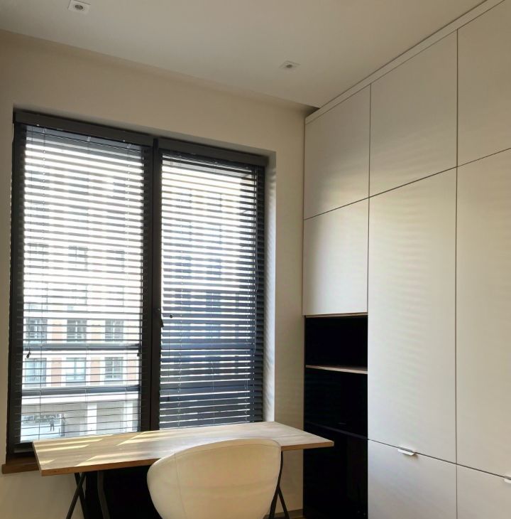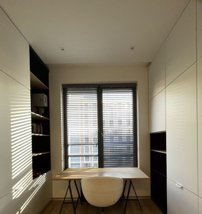 Планировка с кухней-гостиной, просторной спальней с рабочей зоной и совмещенной ванной комнатой. Много мест хранений, большие шкафы. Установлена система вентиляции и кондиционирования.