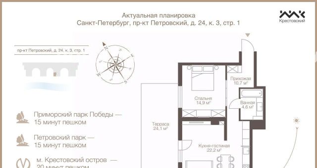 2-к кв. Санкт-Петербург Петровский просп., 24к3 (60.0 м²)