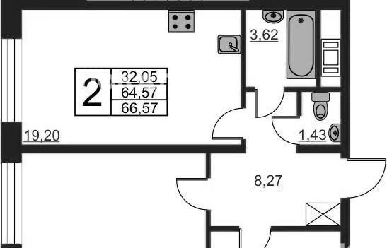 2-к кв. Санкт-Петербург Петровский просп., 26к2 (65.4 м²)