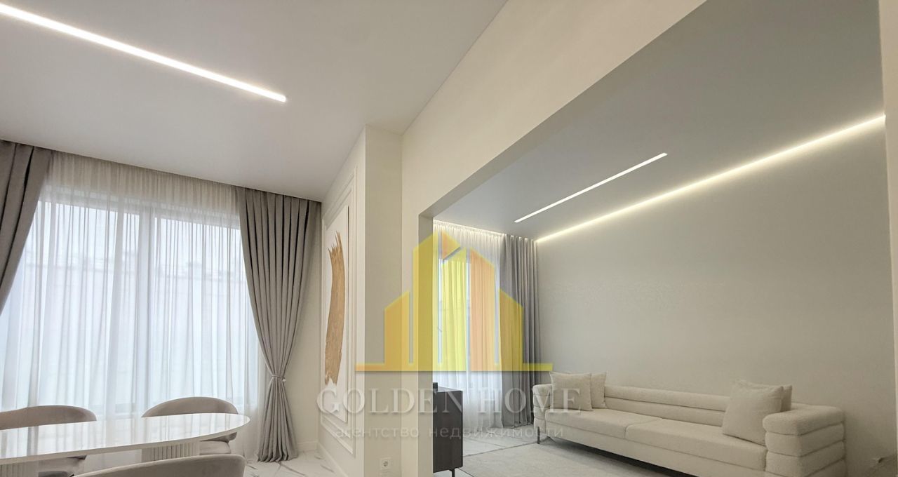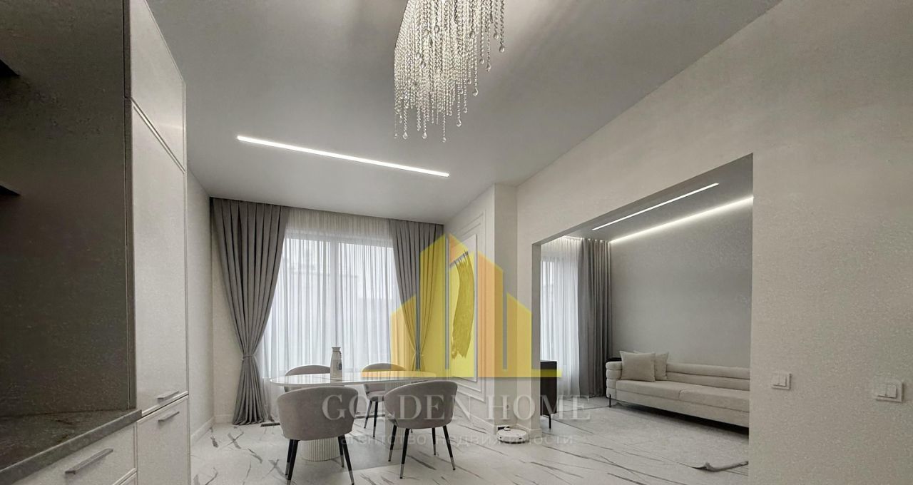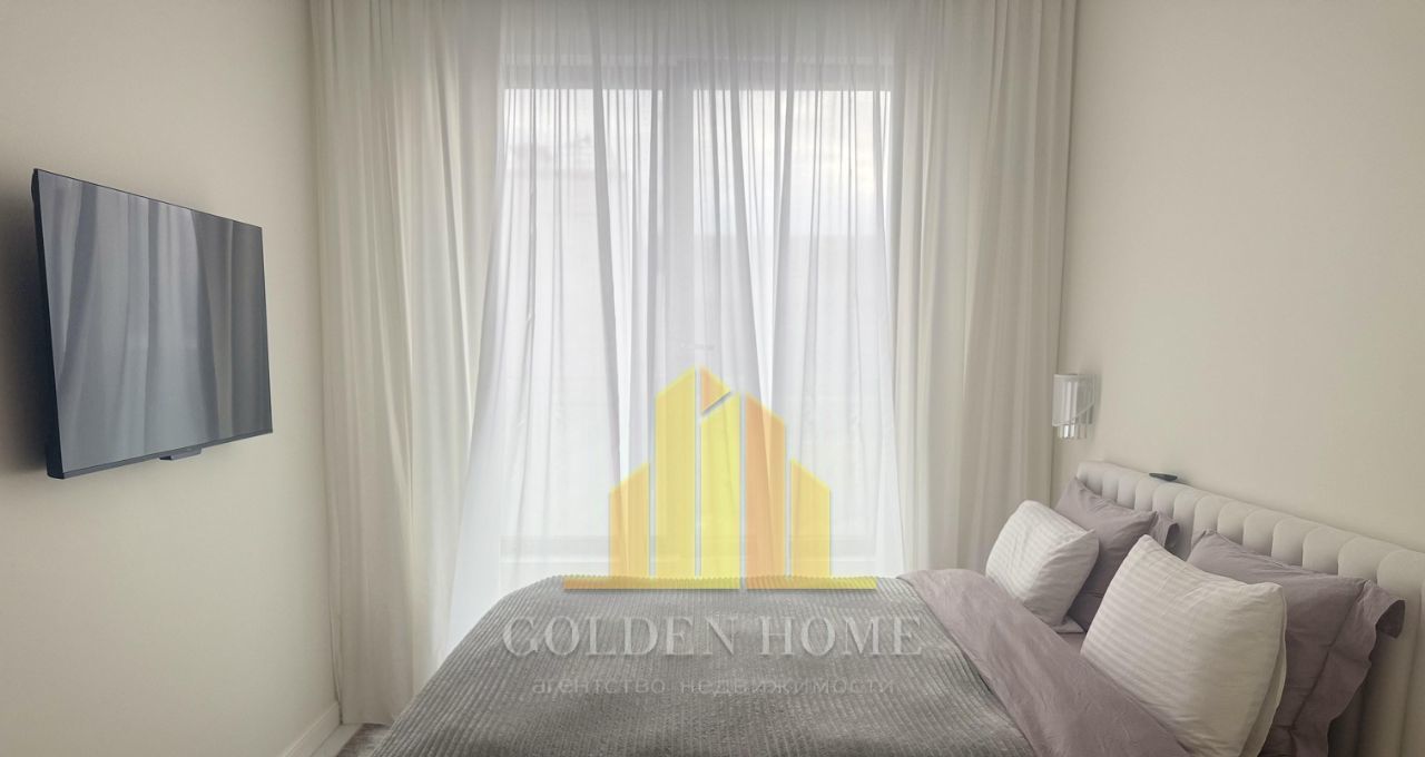 Просторная кухня-гостиная с большим телевизором и комфортным диваном, оборудованная всей необходимой техникой, мастер-спальня с кроватью на 180 и ортопедическим матрасом.