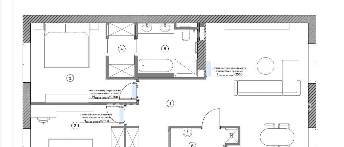 - Мастер-спальня 25 м2 с гардеробной и санузлом (дущевая+ванная);