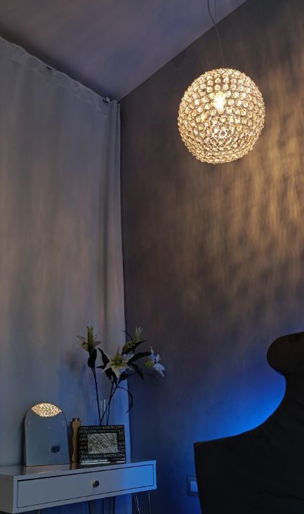 Подсветка регулируется по цвету и настроению во всех помещения и в ванной .А так же дневной свет плавно перетекает во все помещения благодаря встроенным в стены окнам .