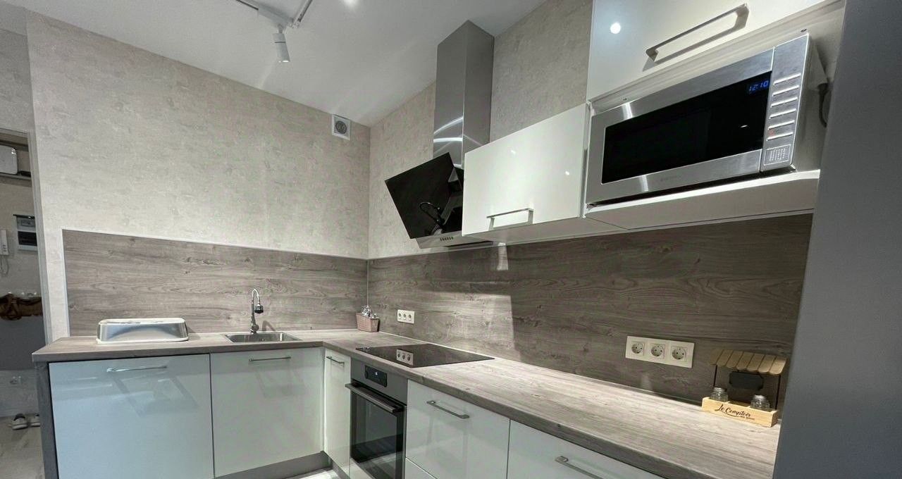 Полностью меблированная, есть вся необходимая бытовая техника. Большое количество мест для хранения.