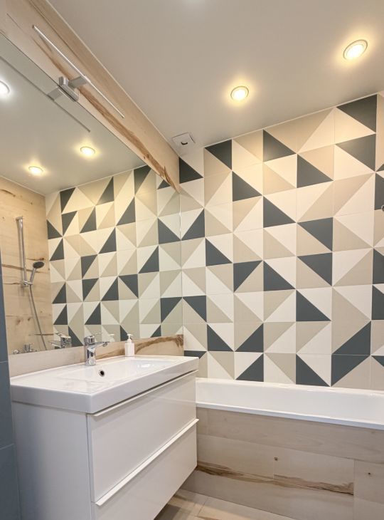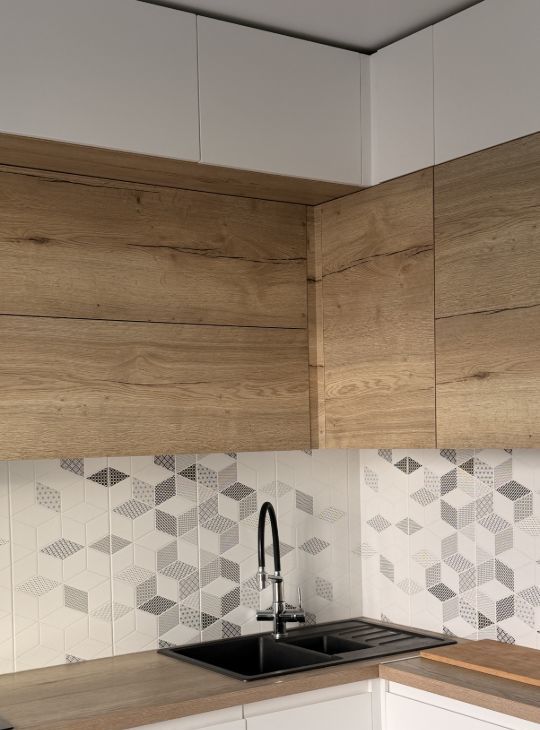 — кухня со всей необходимой техникой и большим количеством систем хранения.