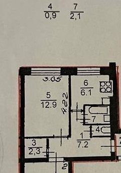 Квартира общей площадью 50 кв м, кухня, 6, 3 кв, изолированные комнаты 17.9 и 12.1 кв м. Санузел раздельный, ванна. Имеется лоджия.